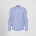 It is made of 100 gr/m² striped poplin (55% polyester, 45% cotton), a lightweight, breathable and resistant fabric, ideal for long working days. The buttoned shirt collar adds a classic, versatile look, while the long sleeves with slit and placket, together with the button cuff, ensure a practical, functional fit. The darts on the chest and back allow for a structured and flattering silhouette.