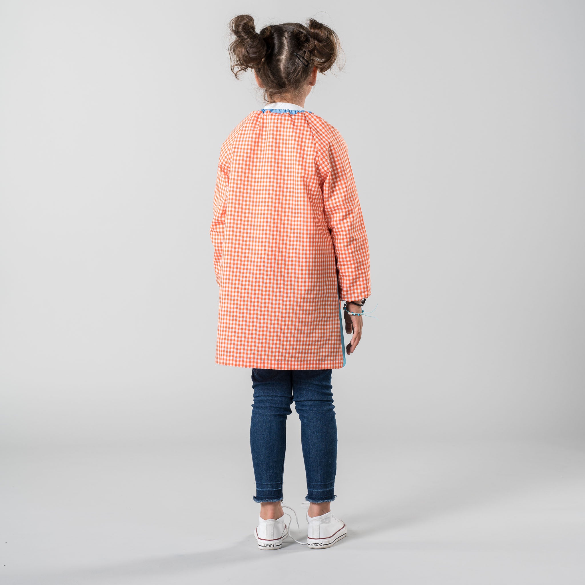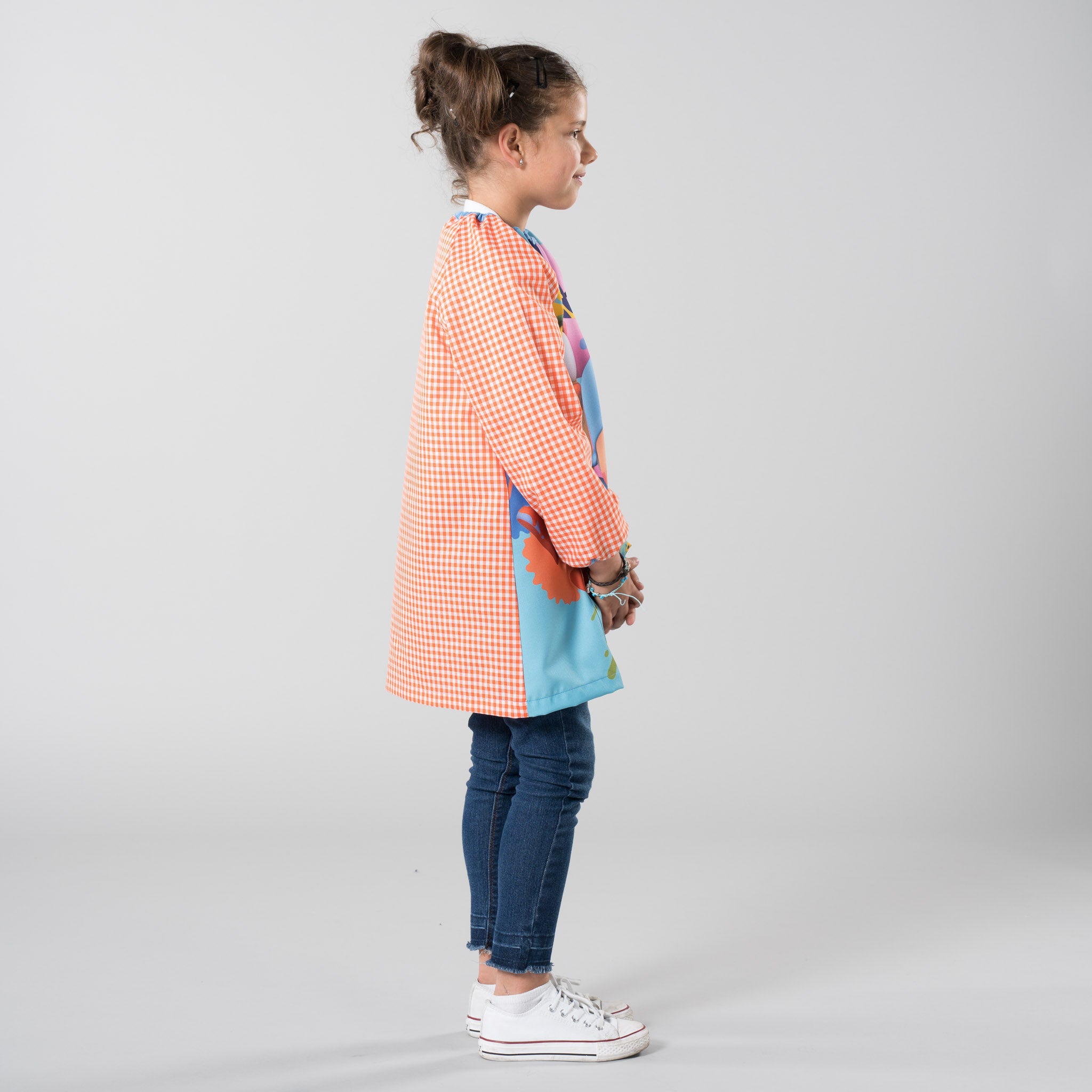 The POCOYO PINTURAS babi is a long sleeved babi with a closed front design. This provides full coverage and ensures that children are protected during their school activities. This babi features a practical central pocket in which children can carry their small items, such as crayons, pencils or tissues. This pocket is convenient and promotes children's autonomy by allowing them to keep their belongings within easy reach. The elasticated cuffs and collar ensure a comfortable fit and prevent the sleeves from sliding up during school activities, ensuring that children are protected at all times. The check fabric in shades of orange adds a touch of colour and style to this school bib. Vichy checks are a classic that never go out of style and make this garment visually appealing. On the front and on the pocket, we find a cheerful print of Pocoyo and his friends. This themed design is appealing to children and can inspire their imagination and creativity. To complete the school set, there is the option of purchasing a matching backpack that goes perfectly with the bib. This allows children to have a coordinated and functional school set.