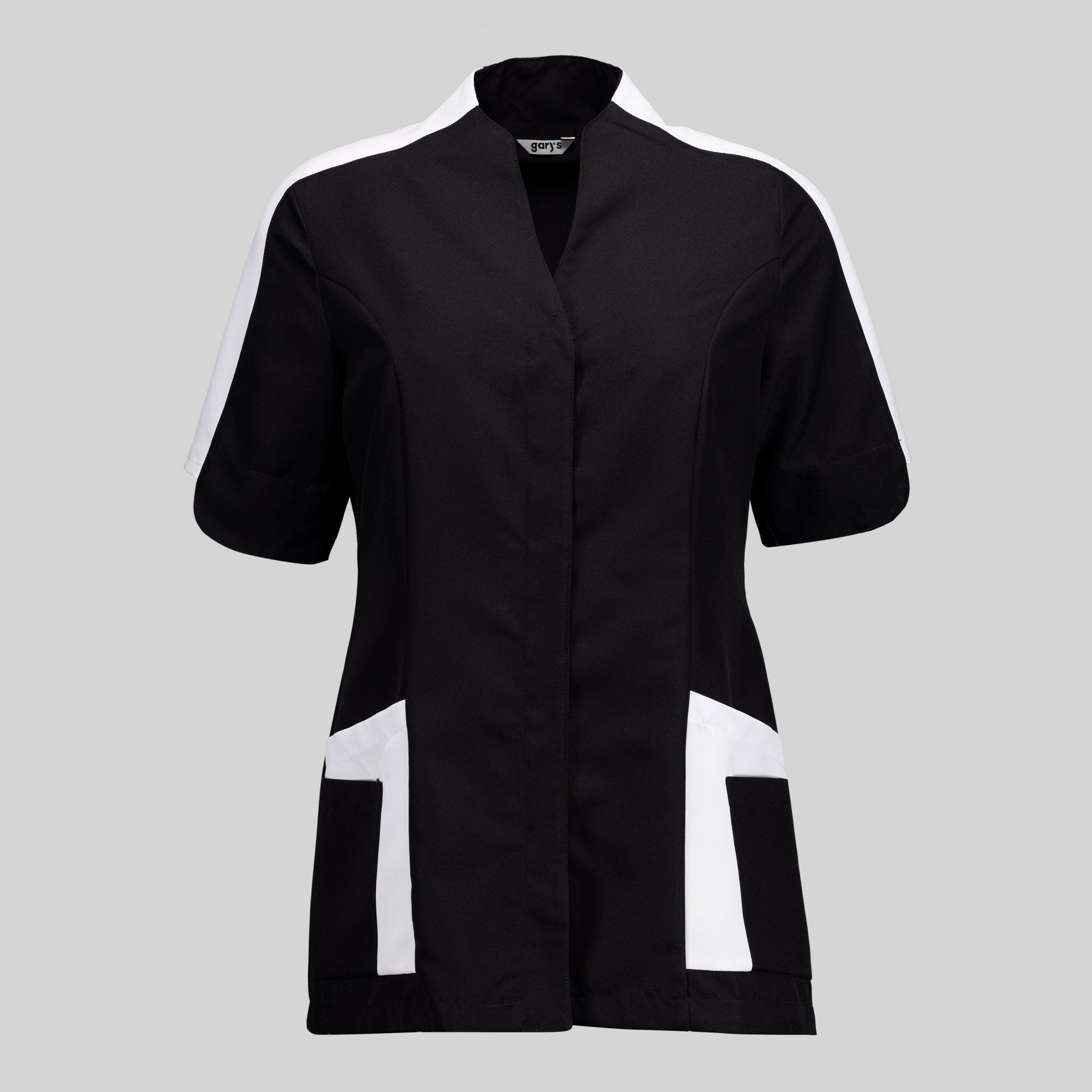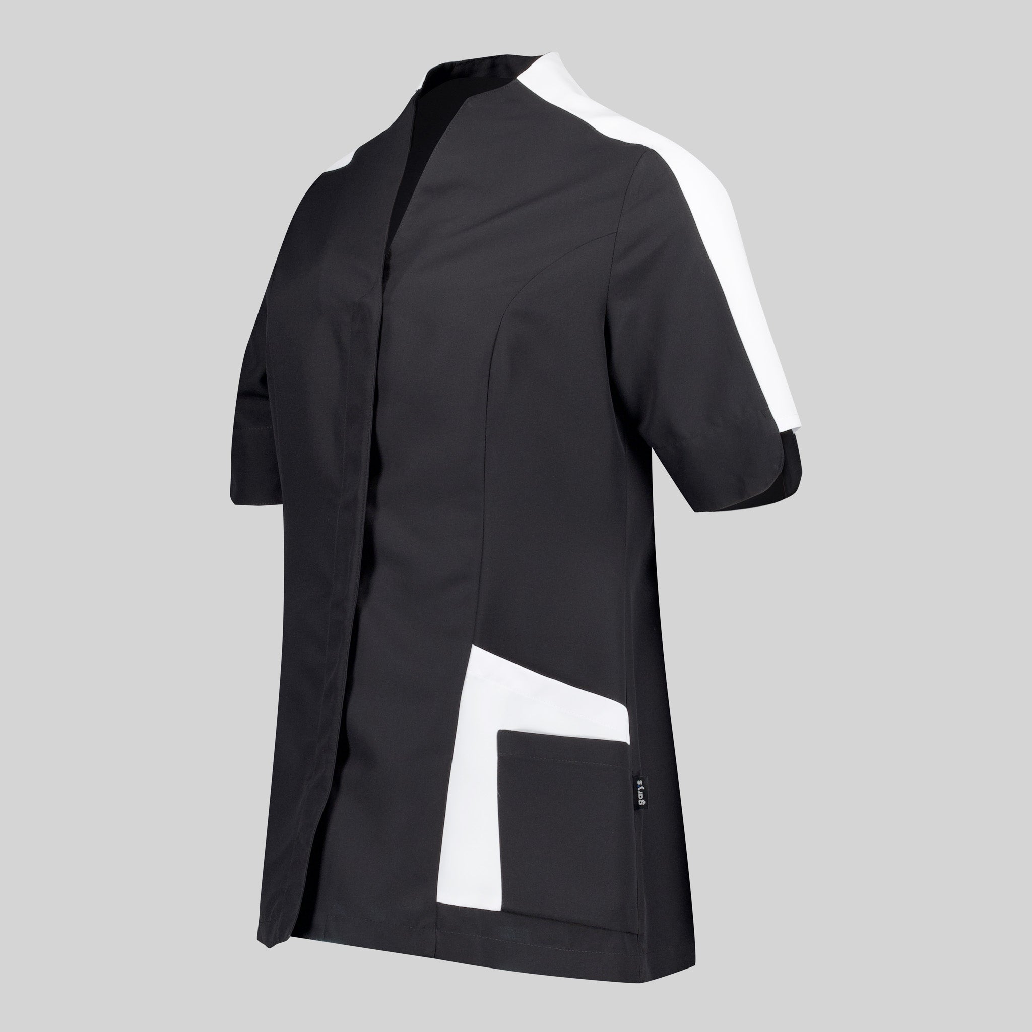 POPPY WOMEN'S BLOUSE, a jacket designed for beauty professionals who seek comfort and style in their work environment. With asymmetrical short sleeves and a funnel neck, this semi-fitted garment features a modern and functional design. Equipped with four side pockets and a concealed press stud fastening, the POPPY blouse offers practicality without compromising on style. Made from 100% PES MICROFIBRE - 148 g/m², this antibacterial fabric is highly breathable, bleach splash resistant and washable at 90º. It also dries quickly, does not require ironing and repels hair and pet hair. Available colours: Black (C/001) Matching trousers: 700600. Experience quality and style in your work wardrobe!