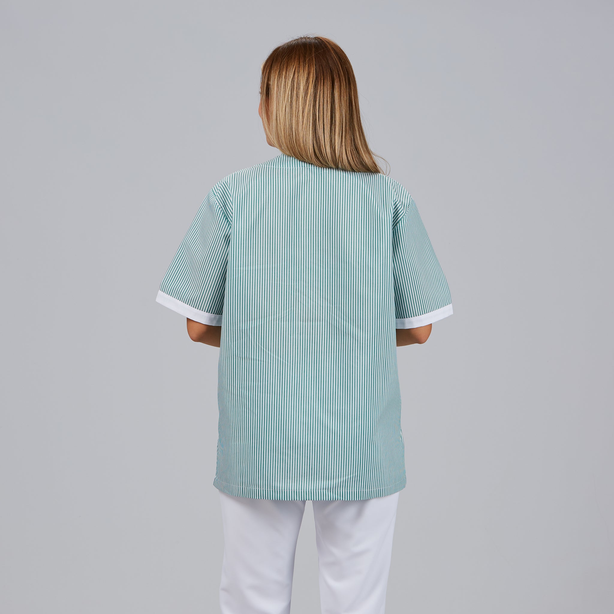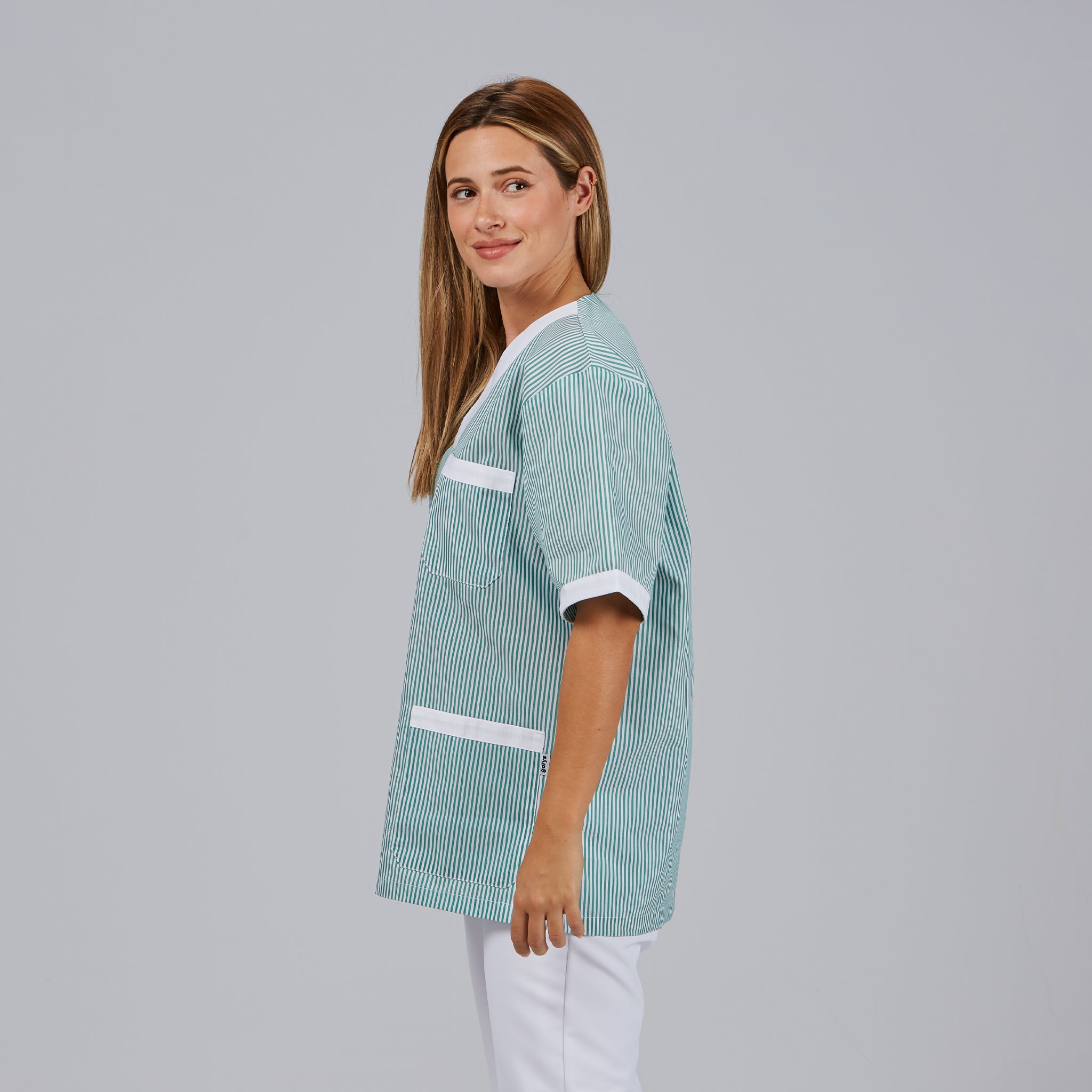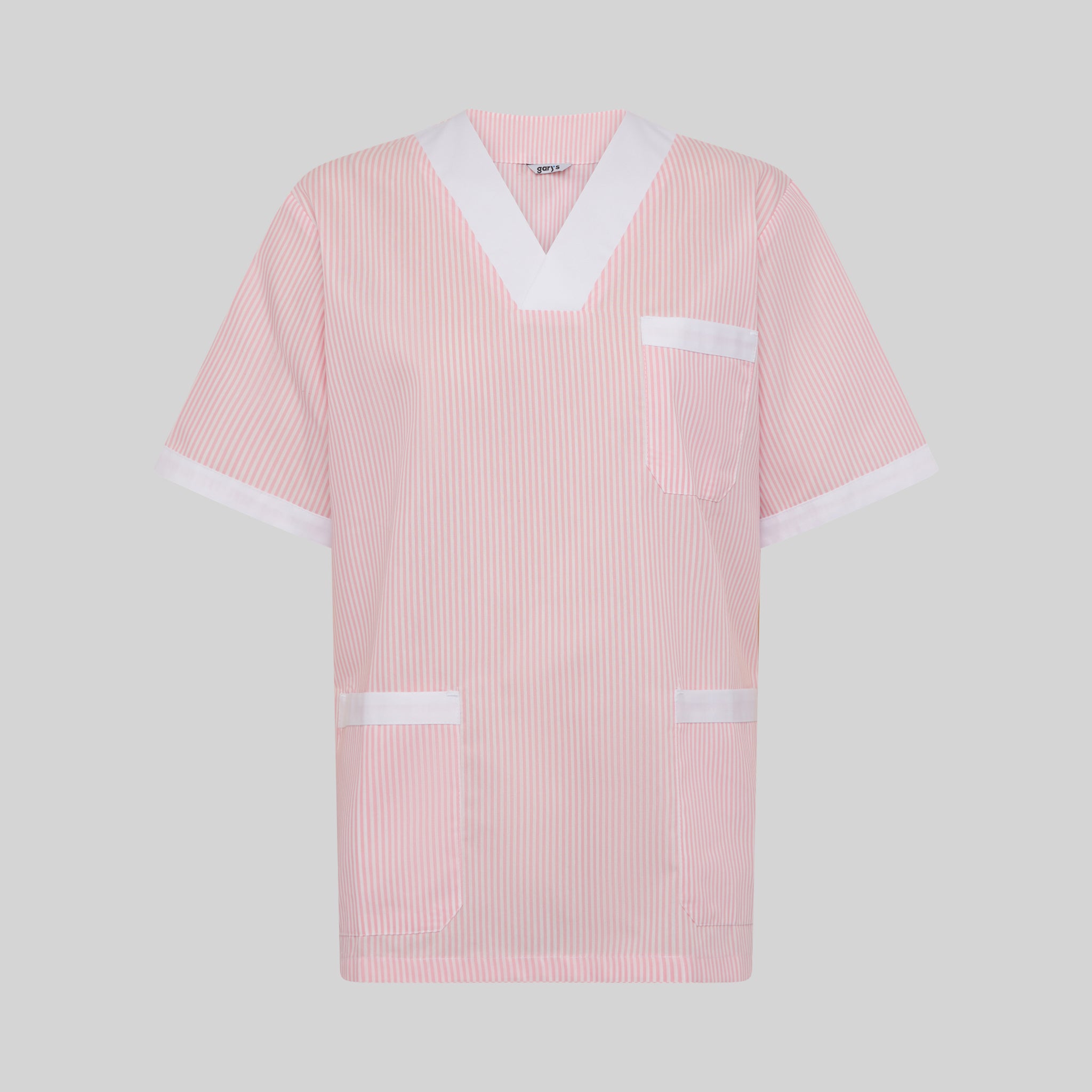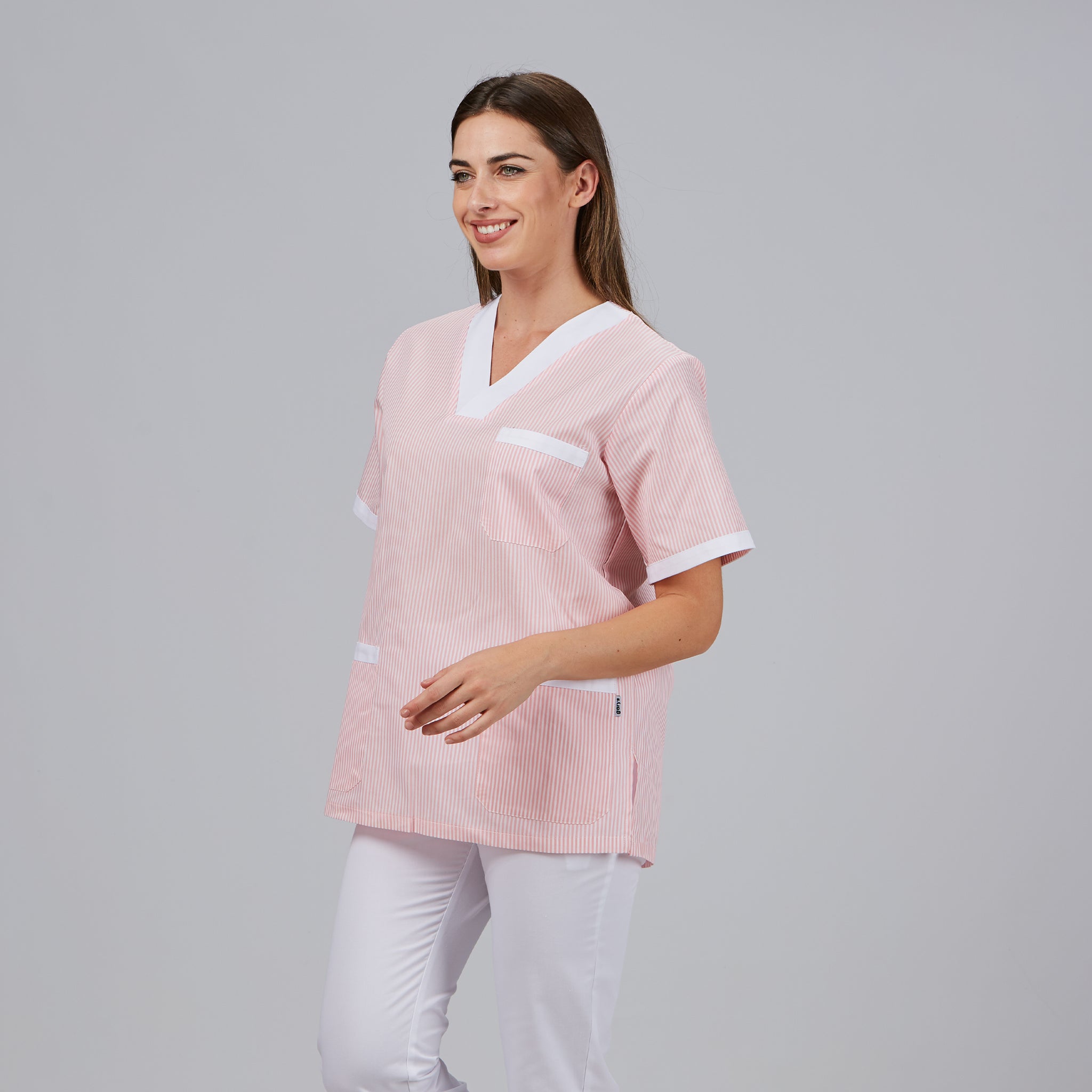 The Unisex Vichy V-Neck Medical Blouse redefines elegance in medical wear. With short sleeves and a V-neck, this blouse features a classic and functional design, ideal for healthcare and food industry professionals. Made from VICHY 65% PES 35% CO - 118 gr/m², combined with white details on the cuffs, collar and pocket piping, this garment adds a touch of distinctive style. Its loose fit and side slits provide comfort throughout the day. Perfect for cleaning uniforms, this blouse is also available in an open model to suit your preferences. Available colours: Light blue stripe (C/4300) | Green stripe (C/4400) | Pink stripe (C/4600) Open model: 652000.