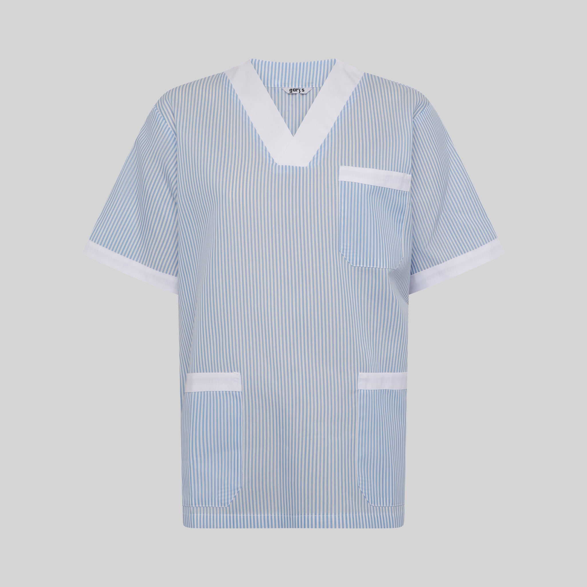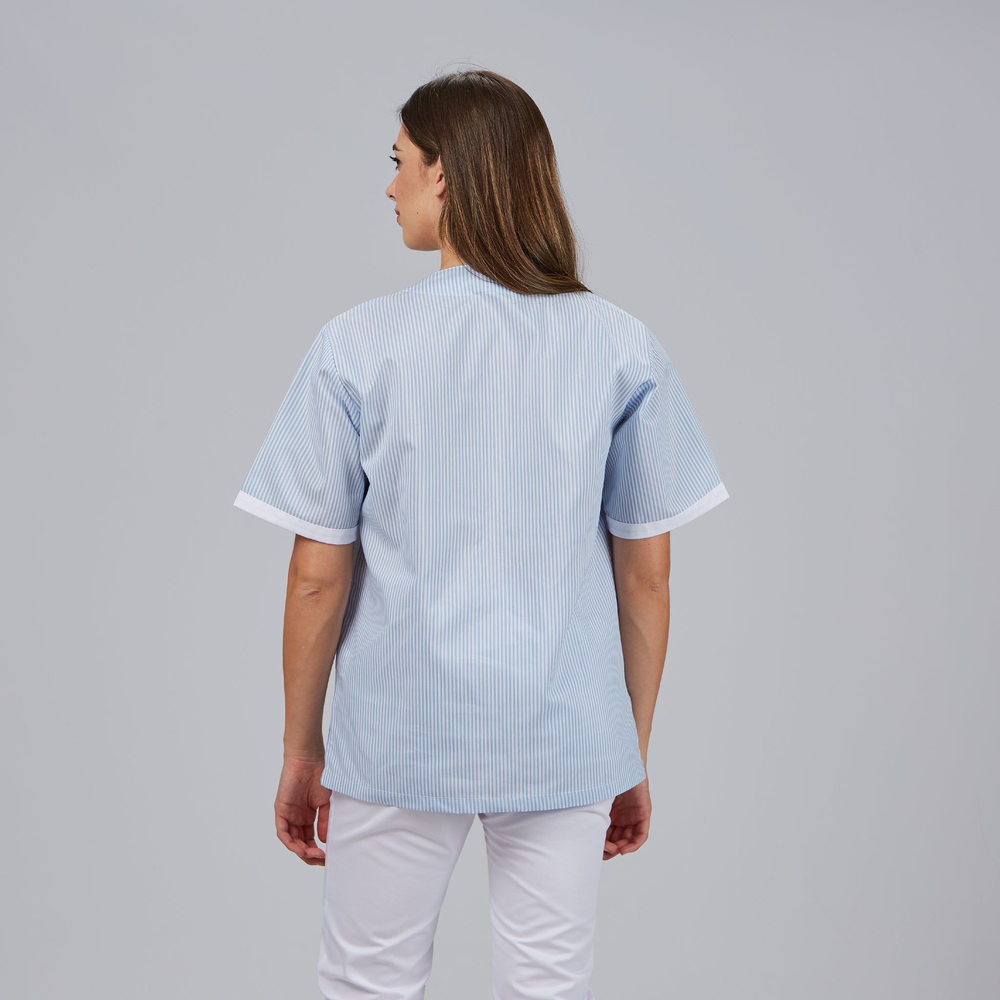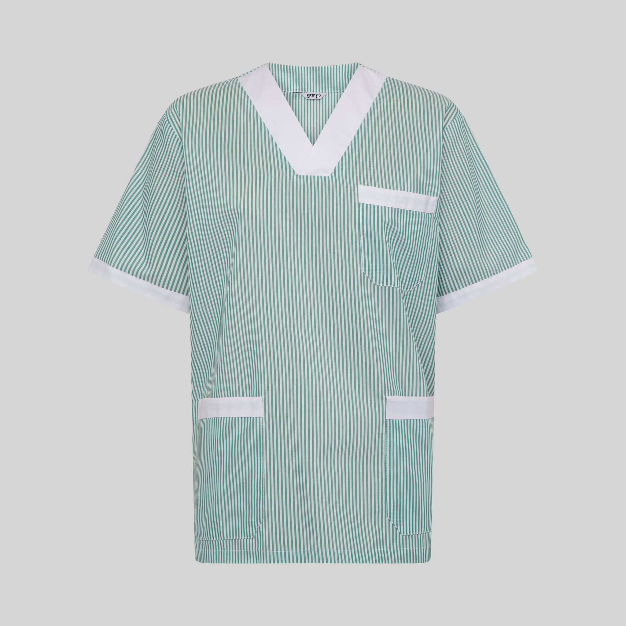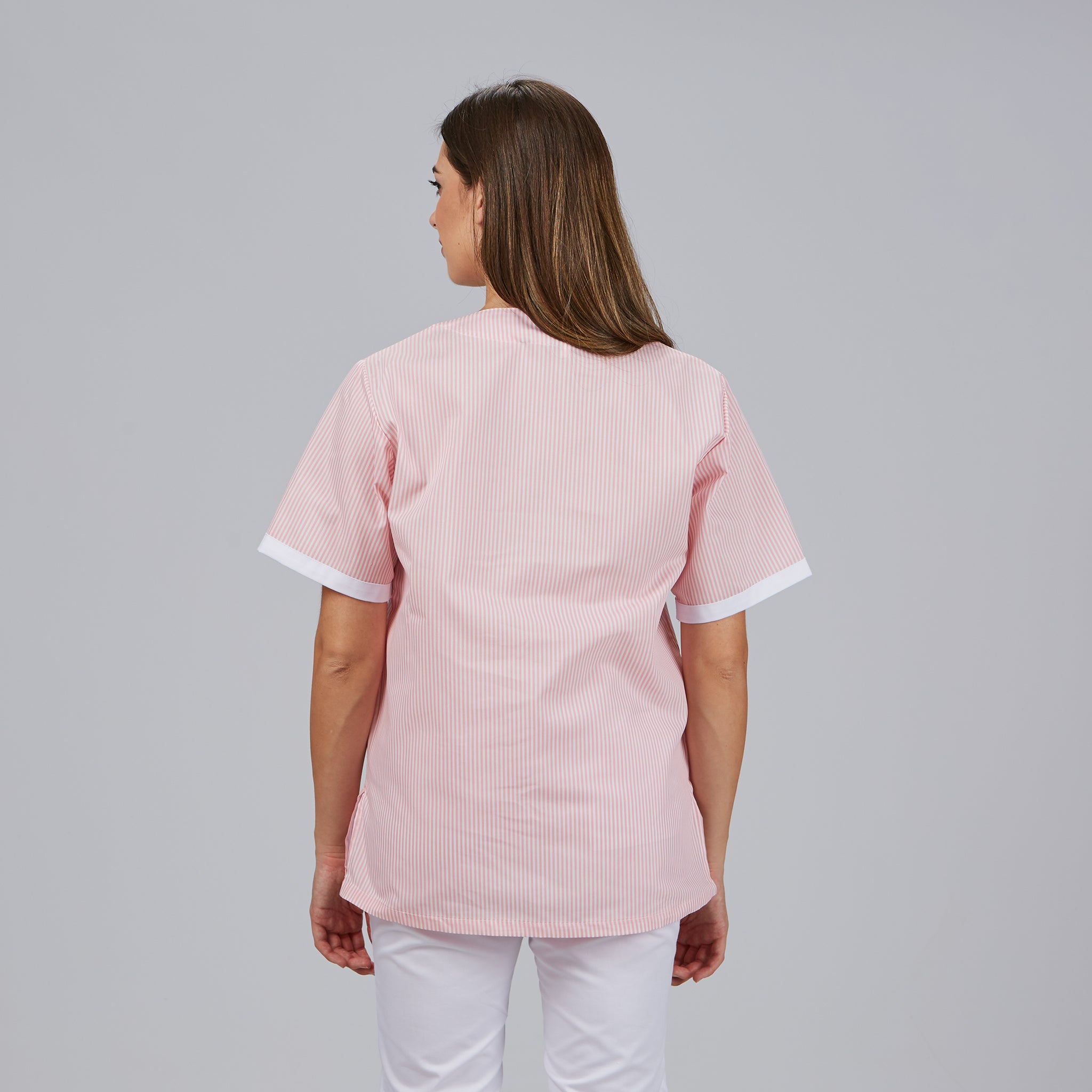 The Unisex Vichy V-Neck Medical Blouse redefines elegance in medical wear. With short sleeves and a V-neck, this blouse features a classic and functional design, ideal for healthcare and food industry professionals. Made from VICHY 65% PES 35% CO - 118 gr/m², combined with white details on the cuffs, collar and pocket piping, this garment adds a touch of distinctive style. Its loose fit and side slits provide comfort throughout the day. Perfect for cleaning uniforms, this blouse is also available in an open model to suit your preferences. Available colours: Light blue stripe (C/4300) | Green stripe (C/4400) | Pink stripe (C/4600) Open model: 652000.