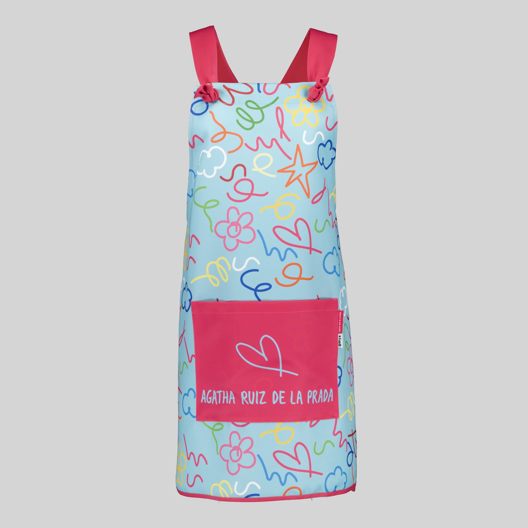 This chasuble is printed with an original and fun design by Agatha Ruiz de la Prada, one of the most renowned designers in contemporary fashion. The unique and creative touch of this renowned brand is the perfect complement to your professional style. The chasuble is equipped with a large central pocket that allows you to store small essentials in the classroom. You no longer have to worry about where to put your tools or work accessories; they will be close at hand at all times. The chasuble's shoulder straps are eyelet and knotted at the front, allowing you to adjust the garment to fit you in a comfortable and personalised way. Comfort is the key to efficiently perform your tasks. The chasuble has back darts and side straps that allow you to adjust it optimally to your body. This flattering fit not only enhances your figure, but also allows you to move with ease throughout the day. Ideal as a school uniform for teachers / educators in nursery schools and kindergartens.