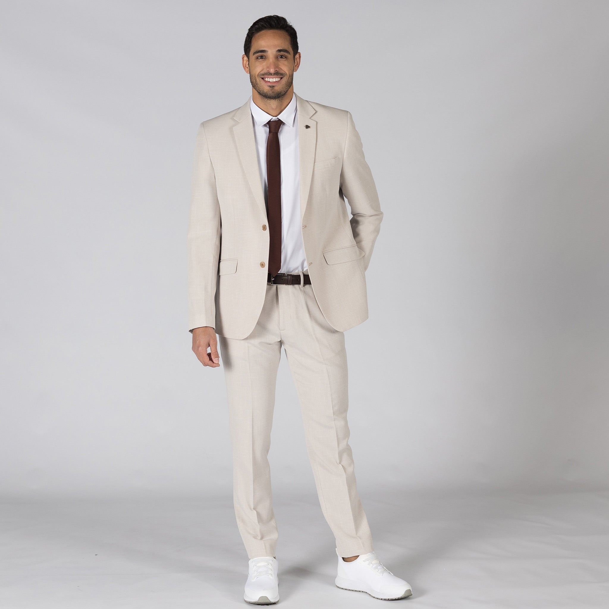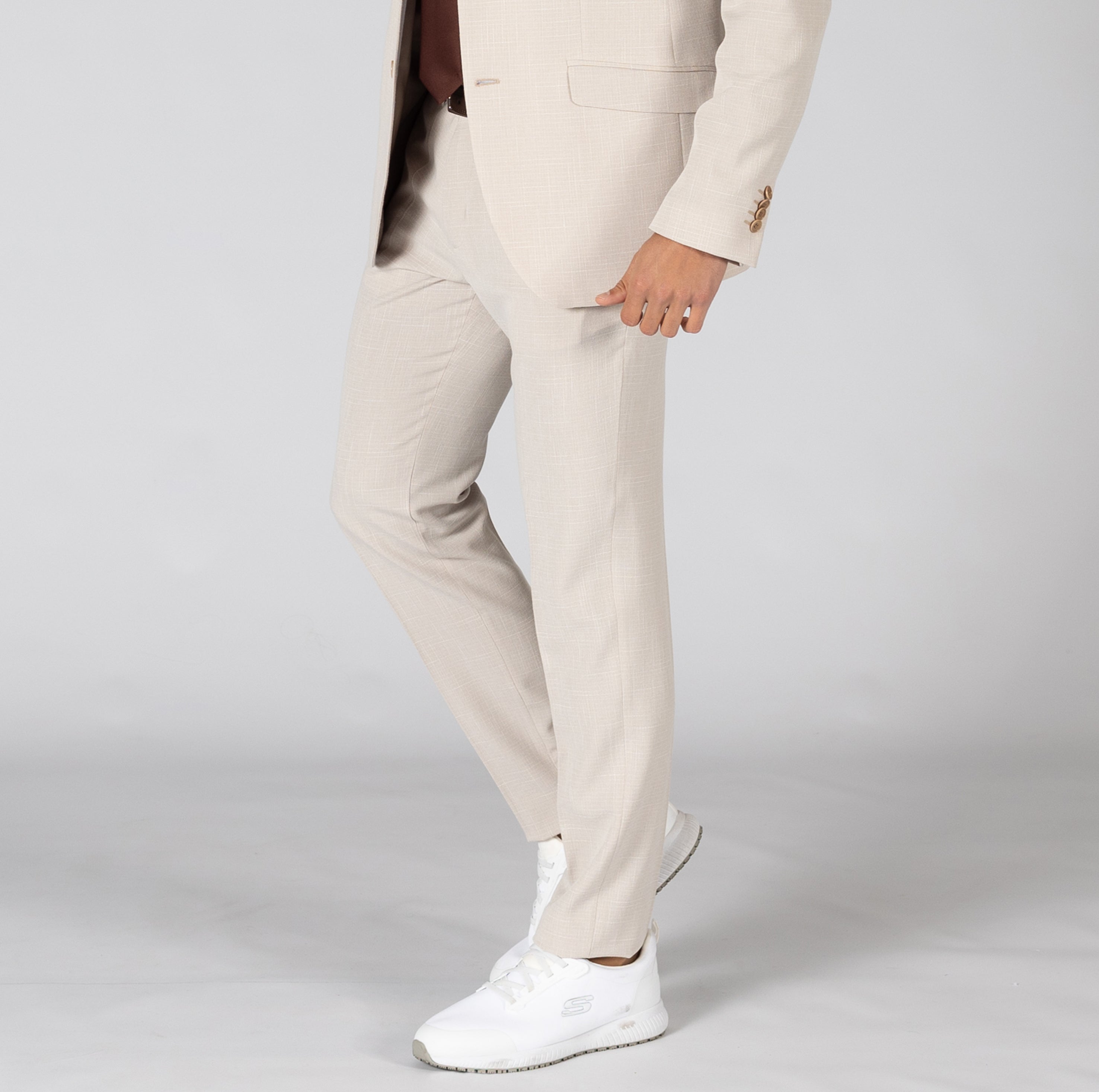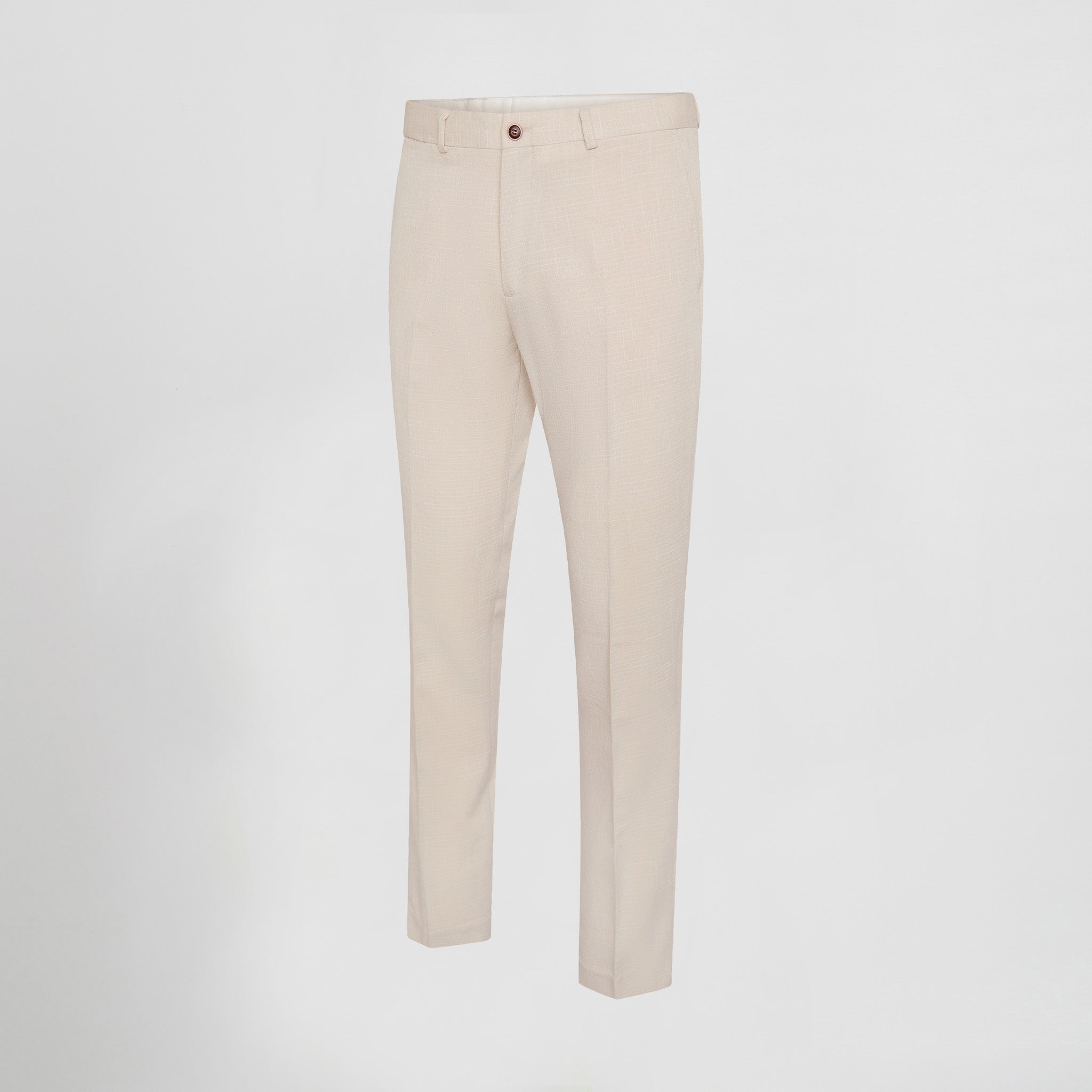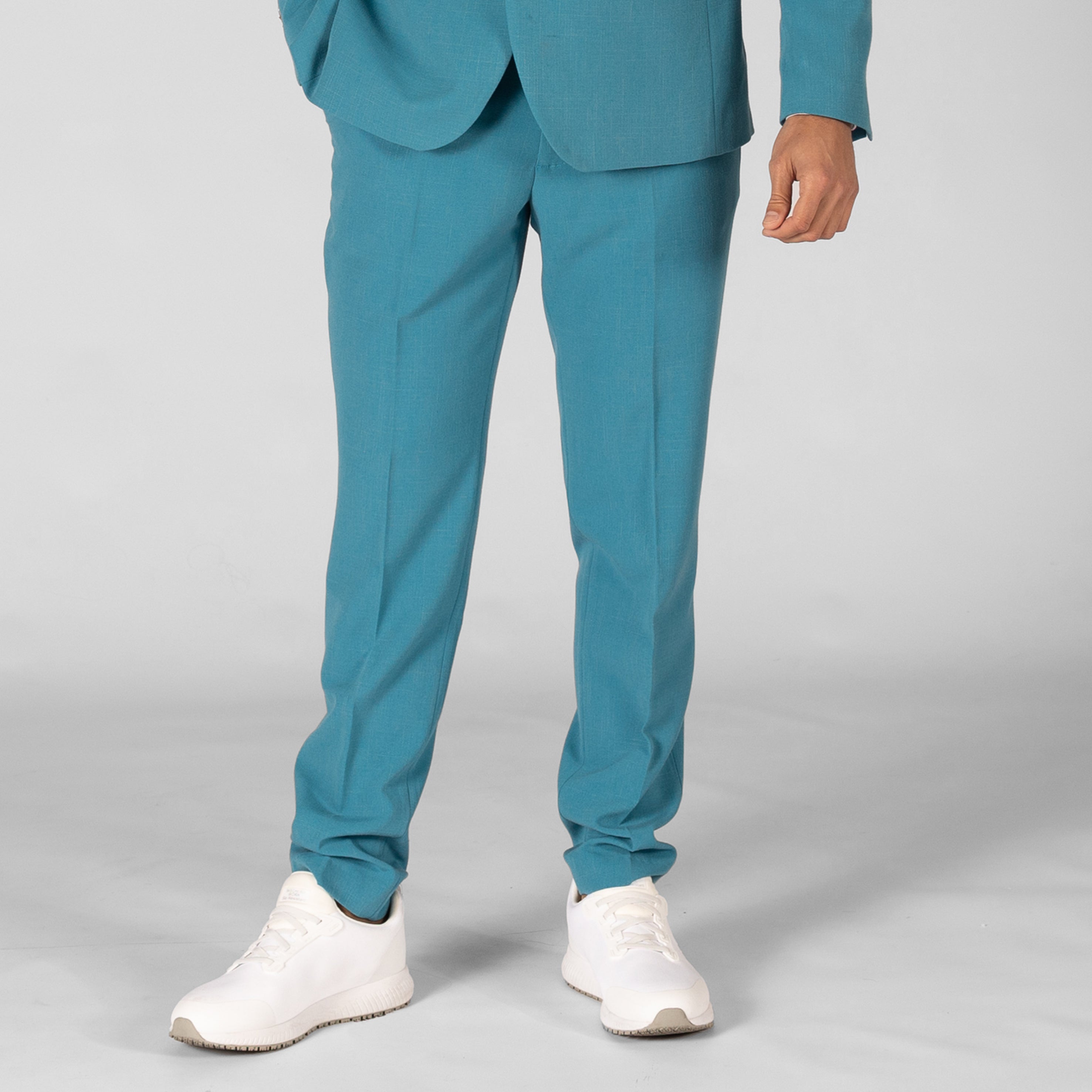 These suit trousers are made from X.LINEN fabric, which consists of 65% polyester, 30% viscose and 5% elastane. This composition provides a balanced blend of durability, softness and elasticity, ensuring comfort and mobility throughout the day. It features two French-cut pockets on the front with topstitching, a welt pocket with button and buttonhole on the back right, and a watch pocket on the right side. These pockets provide space to safely store essential items and work tools. It has six belt loops for a secure and comfortable fit, which is especially useful for those who prefer to wear belts with their uniform. Unlike other trousers, this model does not have visible belt loops, giving it a cleaner, more professional look. Women's version: 700011. Tailoring Collection.