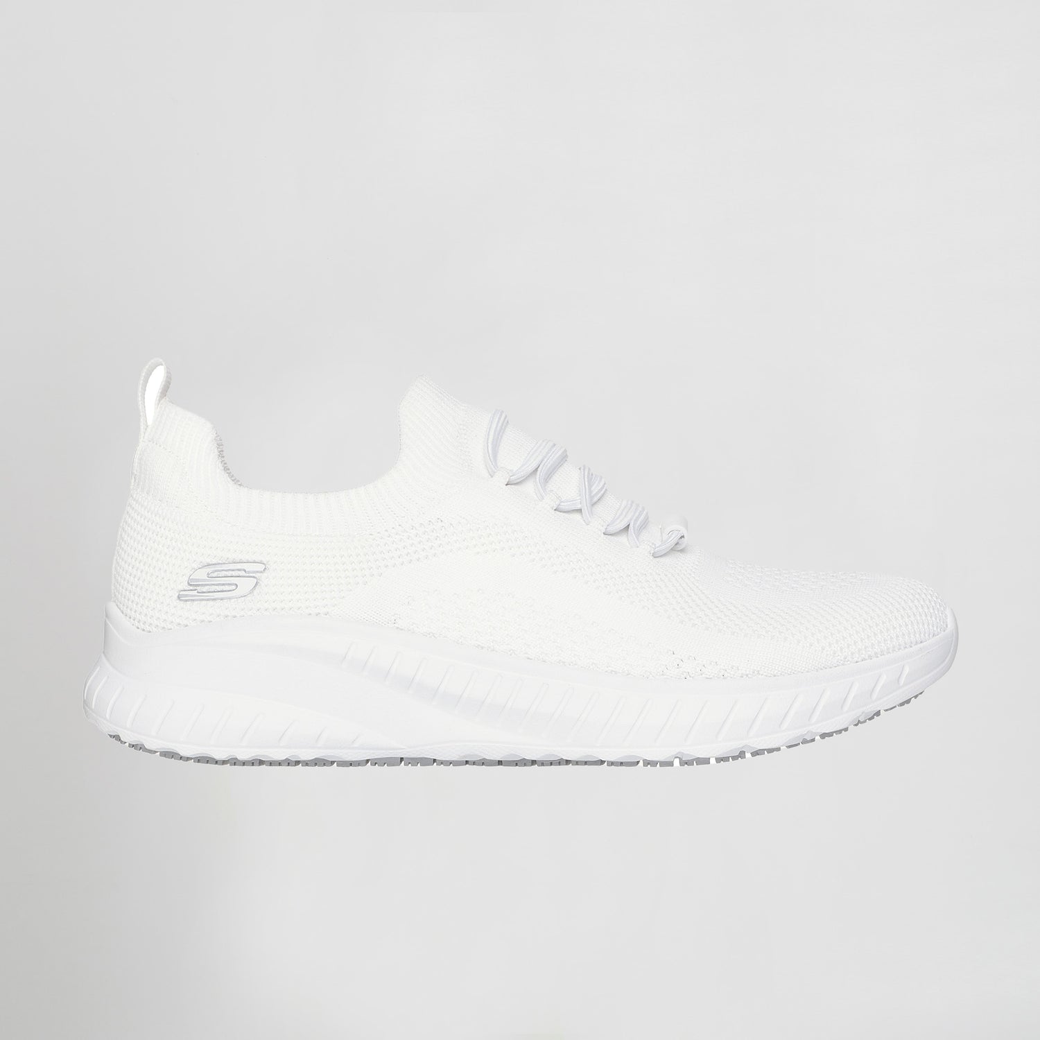Bring sporty style and safety to your shift wearing Skechers Work™ Relaxed Fit®: Skechers BOBS Sport™ Squad Chaos SR. This roomy work style features a Knit® engineered mesh upper with stretch laces, a cushioned Skechers Memory Foam™ insole, and a slip-resistant flexible traction outsole. BOBS® from Skechers® is committed to saving the lives of pets in need. STANDARD: EN ISO 20347:2022 CATEGORY: OB E FO SR SIZES: 35-36-37-38-39-40-41 SLIP RESISTANT AIR-COOLED MEMORY FOAM STRETCH KNIT NO TIE FIT