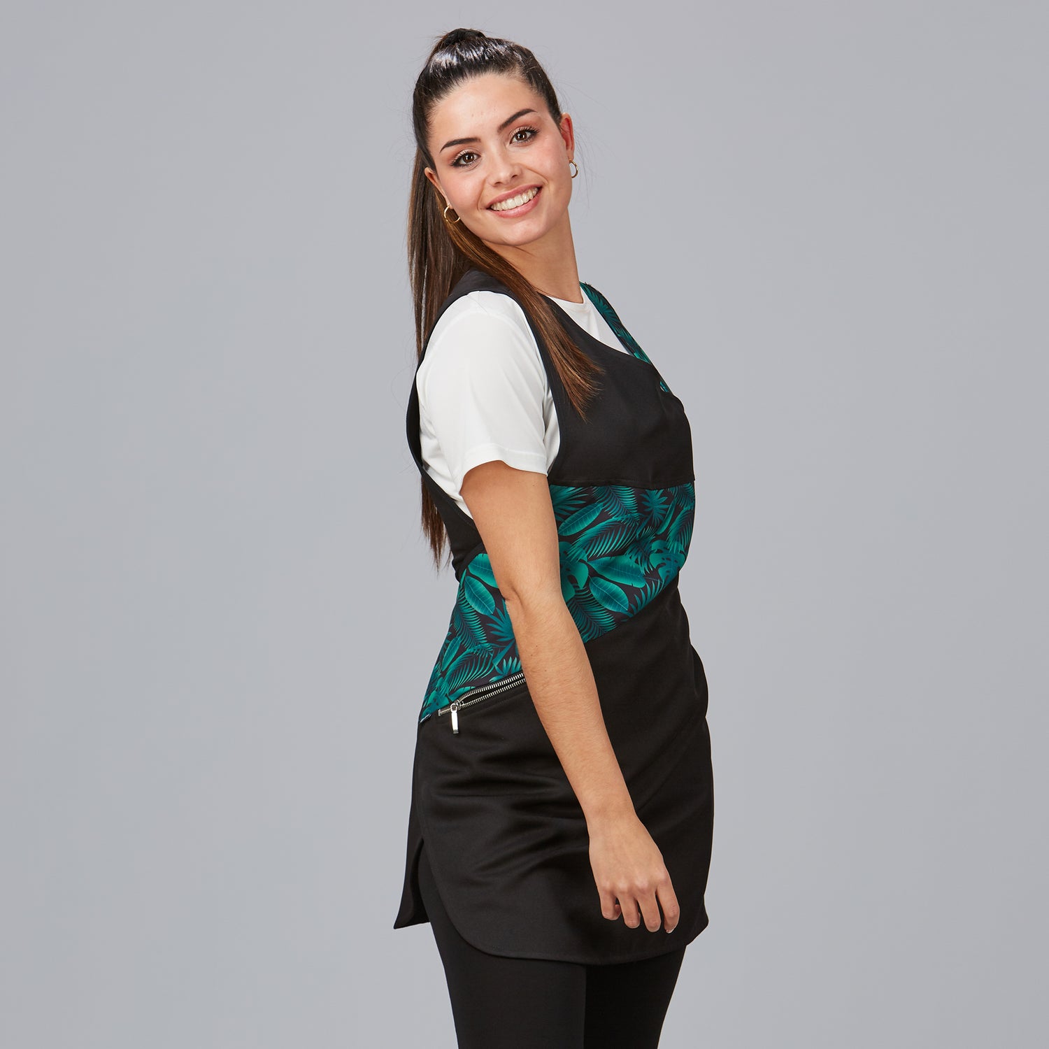 Cette chasuble en forme d'étole allie un noir élégant à un imprimé original, ce qui vous permet de vous démarquer et de projeter une image moderne dans le monde de la beauté. La chasuble zippée VERBENA est équipée d'une poche latérale intérieure, offrant un espace de rangement supplémentaire pour les outils et accessoires essentiels pendant votre journée de travail. Les bretelles latérales réglables assurent un ajustement parfait, vous permettant de travailler dans le confort et sans restriction. Le design à motifs et l'utilisation du noir vous permettent de vous démarquer dans l'industrie de la beauté, en projetant une image de professionnalisme et d'avant-garde. La poche latérale intérieure est idéale pour ranger vos outils et accessoires et les garder à portée de main à tout moment. Les bretelles réglables garantissent un ajustement confortable et personnalisé de votre chasuble, vous permettant de vous déplacer librement. Le choix de matériaux de haute qualité et le design à motifs distinguent cette chasuble de la concurrence et témoignent de votre engagement en faveur de l'excellence. Les clients apprécient le confort, la fonctionnalité et le style que vous leur offrez, ce qui renforce la perception de professionnalisme et les fidélise. La facilité d'entretien de la chasuble zippée VERBENA simplifie votre routine d'entretien, vous permettant de maintenir sans effort votre uniforme en parfait état. Idéale pour les salons de beauté, les coiffeurs, les loisirs et le commerce de détail.