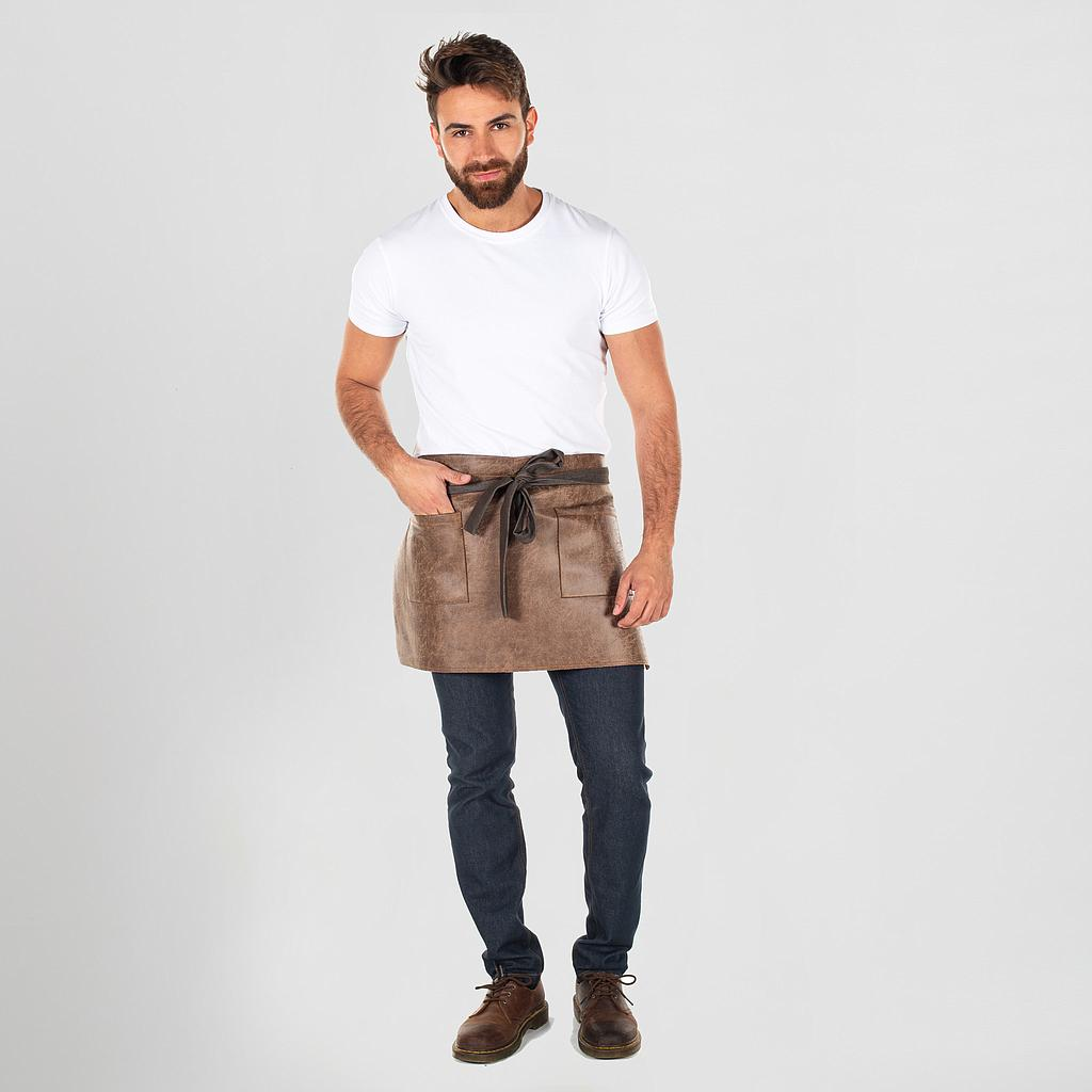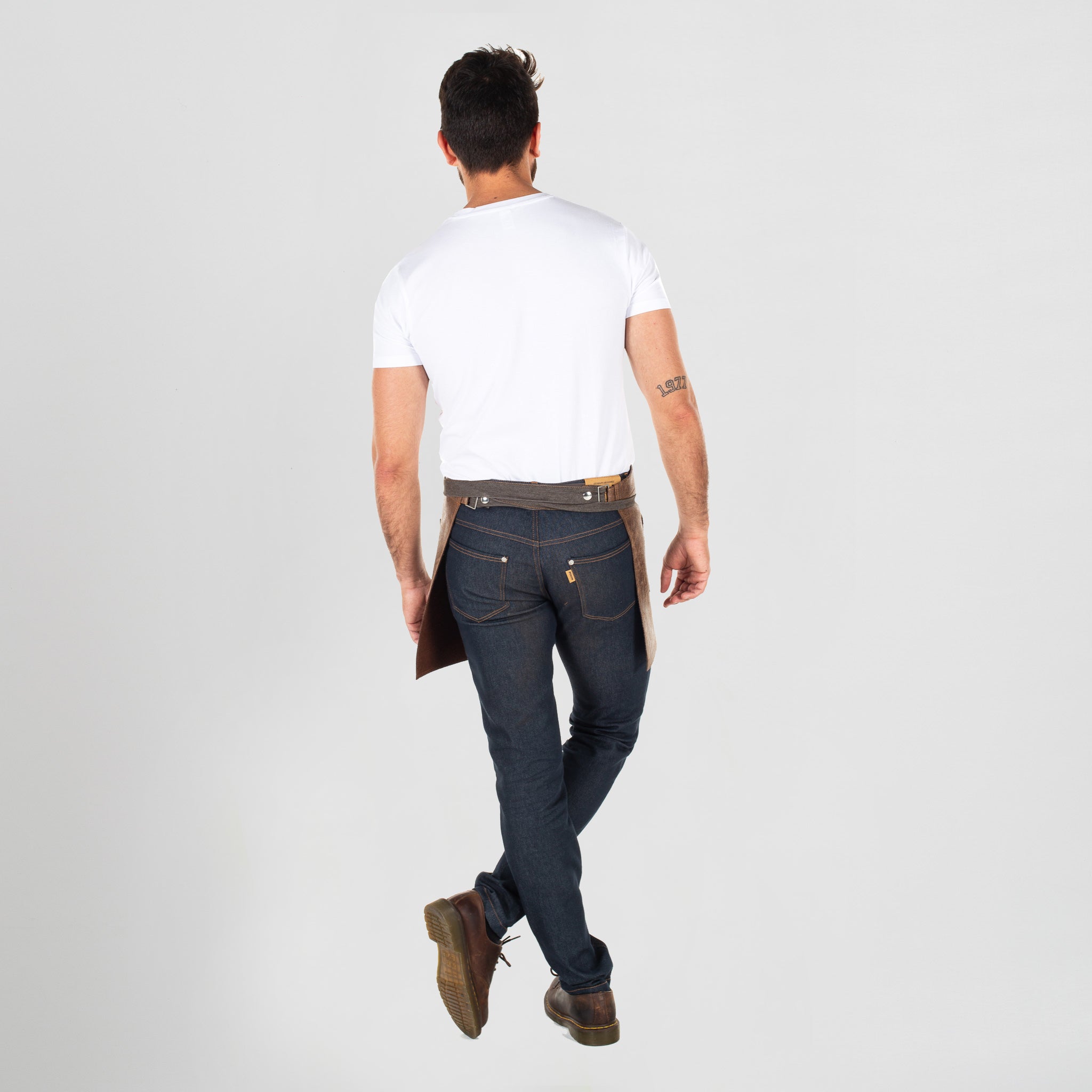 Plongez dans l'élégance durable avec notre tablier court Chihuahua, une pièce unique en cuir 100 % recyclé qui redéfinit les vêtements de travail. Conçu dans un souci de confort et de style, ce tablier est doté de bretelles nouées en denim extensible marron pour une touche de modernité et un ajustement parfait. Les deux poches avant permettent de transporter des outils essentiels, tandis que les boucles latérales ne sont pas seulement un détail élégant, mais permettent également un ajustement personnalisé. Idéal pour les serveurs de l'hôtellerie et de la restauration, ainsi que pour les professionnels des salons de coiffure et des magasins qui souhaitent se démarquer par une touche de mode durable. Soulignez votre engagement en faveur de l'écologie et de l'élégance avec le tablier court Chihuahua. Faites une déclaration de style consciente dans votre environnement de travail - commandez maintenant et faites passer la mode éthique et la fonctionnalité à un niveau supérieur !