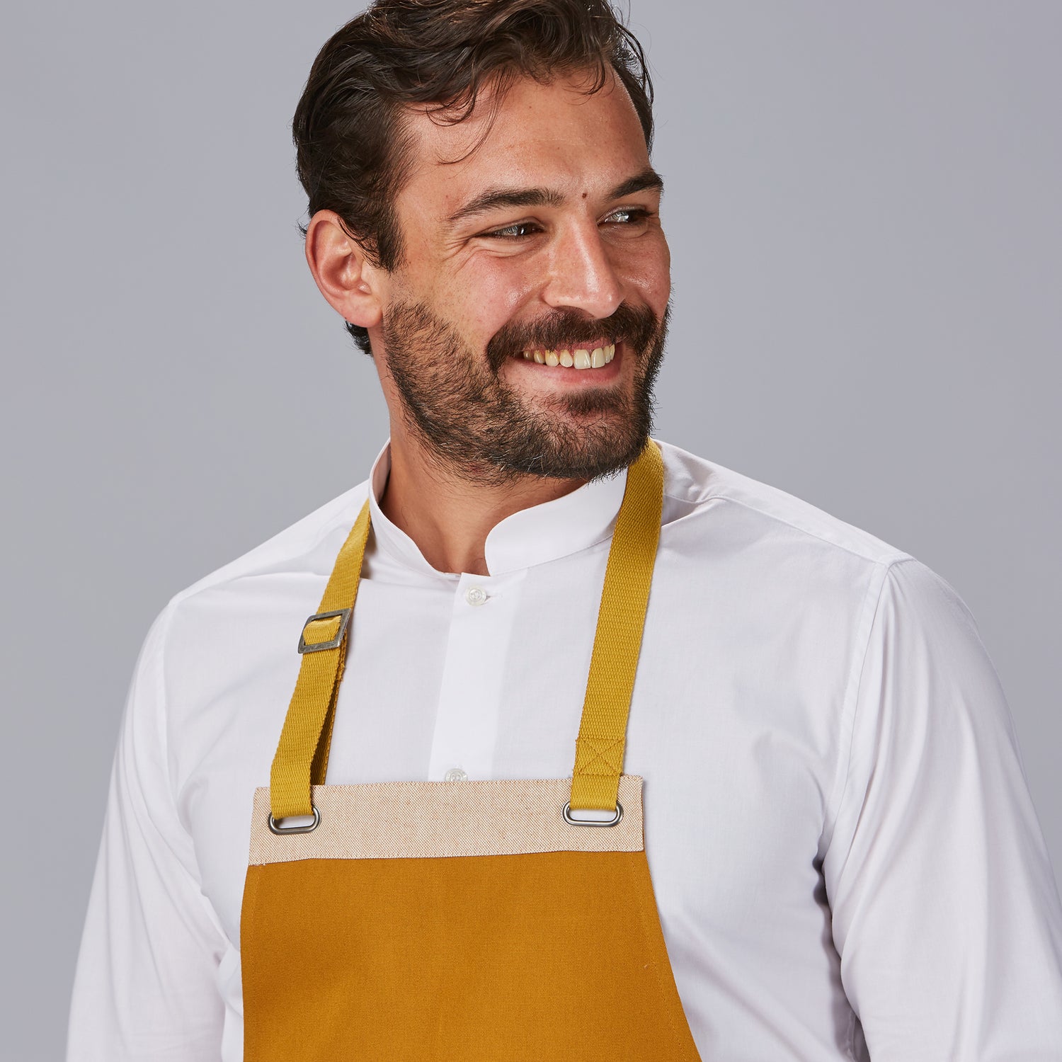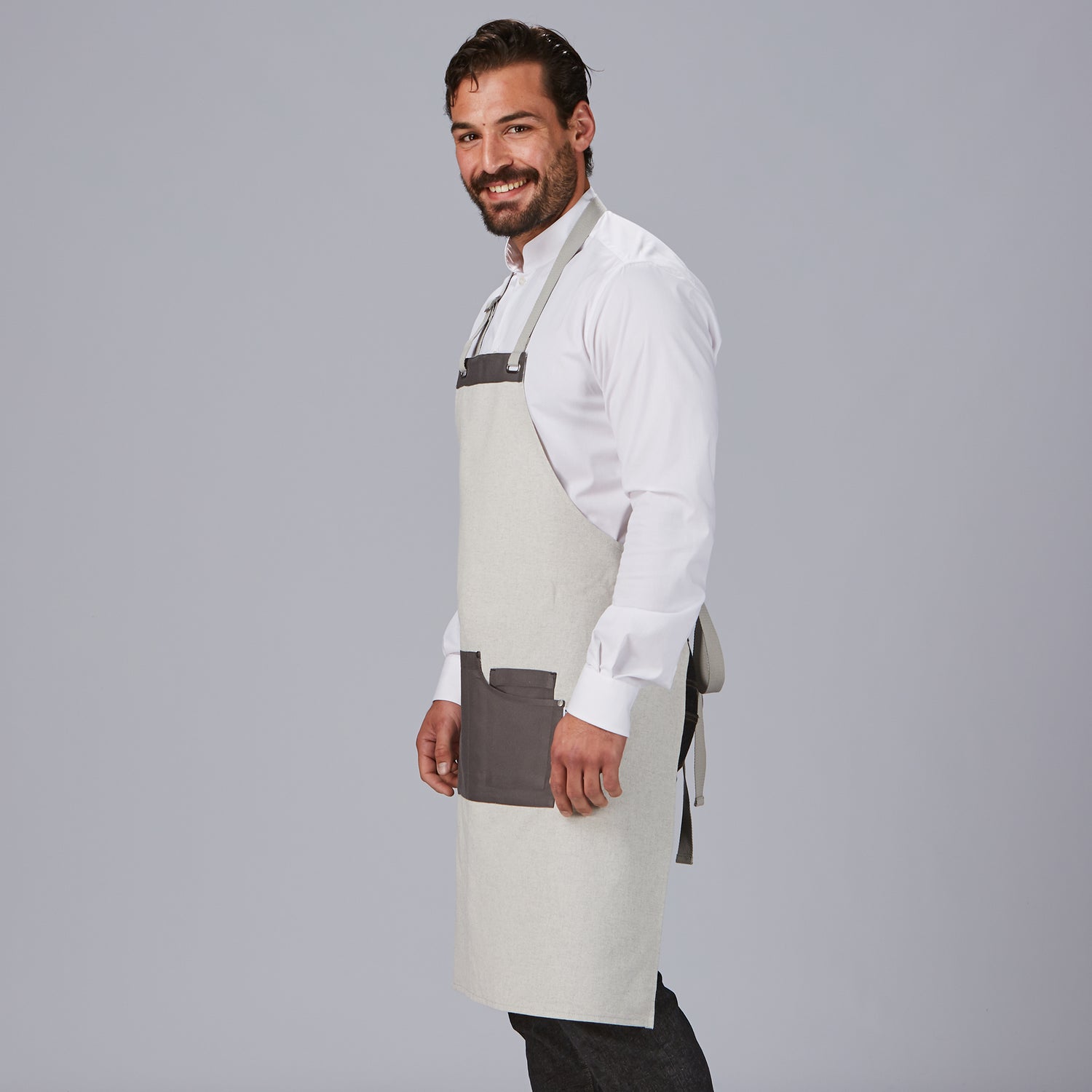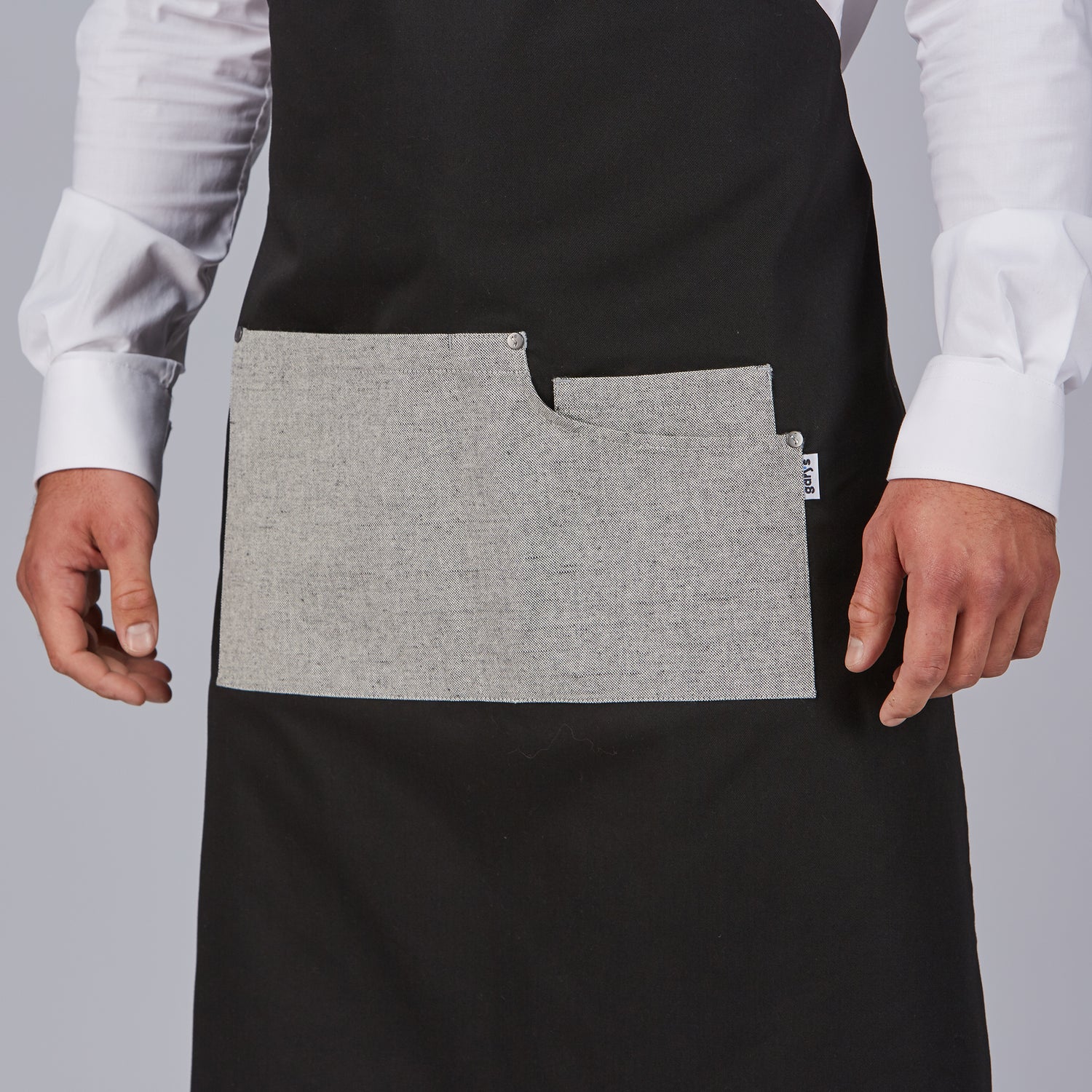 Le tablier à bavette Bicolour allie un design moderne et polyvalent à une durabilité et un confort maximums. Il est idéal pour les cuisiniers, les serveurs et les baristas qui souhaitent se démarquer dans leur environnement de travail. Fabriqué en tissu Panama 100 % polyester de 210 gr/m², il garantit une résistance à l'usure et un entretien facile. - Bretelle à chevrons réglable avec insert métallique pour un ajustement confortable et personnalisé. - Bavette avec deux œillets ovales, qui ajoutent une touche originale au design. - 3 poches frontales, parfaites pour transporter des ustensiles ou des outils de travail. - Longueur approximative : 88 cm. Disponible en noir, gris clair et moutarde. Ce tablier est idéal pour ceux qui recherchent le confort, la fonctionnalité et une touche moderne à leur uniforme de travail.