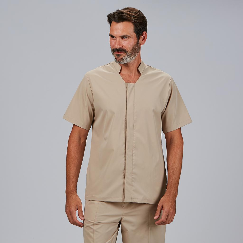 La camicetta MARC di Uniformes Gary's è un capo professionale progettato per offrire comfort, leggerezza e uno stile intramontabile. Pensata per settori quali sanità, benessere, estetica o reception, si distingue per il suo design funzionale, pulito e accattivante. Realizzata in tessuto SOREMA 53% PES RECYCLED 47% BIO PES - 108 gr/m², questa camicetta è leggera, traspirante e sostenibile, ideale per i professionisti che apprezzano sia l'immagine che l'impegno ambientale. Il suo design incorpora un collo alla coreana con scollo a V che conferisce un tocco moderno, nonché una chiusura frontale con bottoni nascosti, che garantisce una finitura raffinata. Le pinces sul retro migliorano la vestibilità senza perdere ampiezza, grazie al suo modello H3 ampio. Le due tasche laterali aggiungono funzionalità alla vita quotidiana. Con una lunghezza di circa 75 cm, è un capo pensato per lavorare in totale libertà e con stile. Colori disponibili: Nero (C/001) | Bianco (C/101) | Blu navy (C/104) | Sabbia (C/142) | Verde kaki (C/149) Pantaloni abbinati: 700078. Versione donna: 600091.