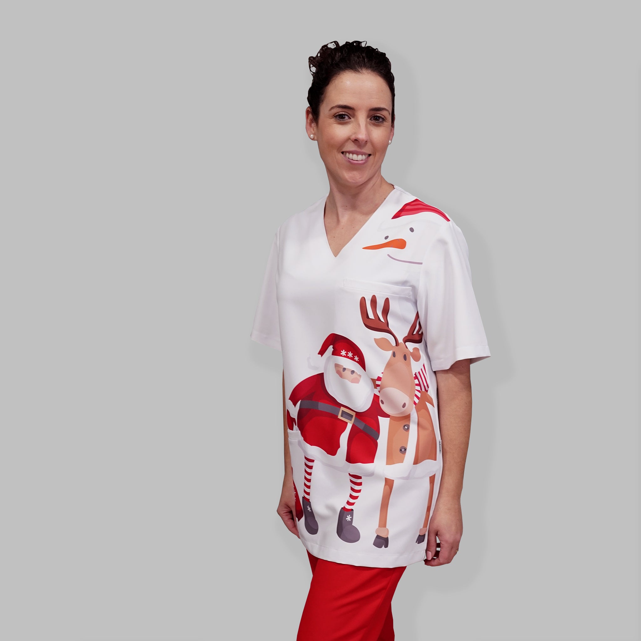 Scoprite la blusa UNISEX MERRY CHRISTMAS, un capo unico progettato per gli operatori sanitari che desiderano portare lo spirito festivo sul posto di lavoro. Ideale per medici, infermieri, dentisti e fisioterapisti, questa camicetta sanitaria presenta una vivace stampa con motivi natalizi, come alberi di Natale e Babbo Natale, che aggiungerà allegria al vostro posto di lavoro. Realizzato in microfibra 100% poliestere, questo capo non è solo festivo ma anche funzionale, in quanto offre traspirabilità e comfort per le lunghe giornate. Il MERRY CHRISTMAS UNISEX BLANKET è la scelta perfetta per chi vuole distinguersi nell'ambiente sanitario con stile e allegria durante le festività natalizie. Aggiungete un tocco di divertimento e professionalità alla vostra uniforme con questa camicetta unica, progettata per irradiare felicità a ogni consultazione e cura. Festeggiate il Natale con stile e comodità nel vostro ambiente di lavoro!