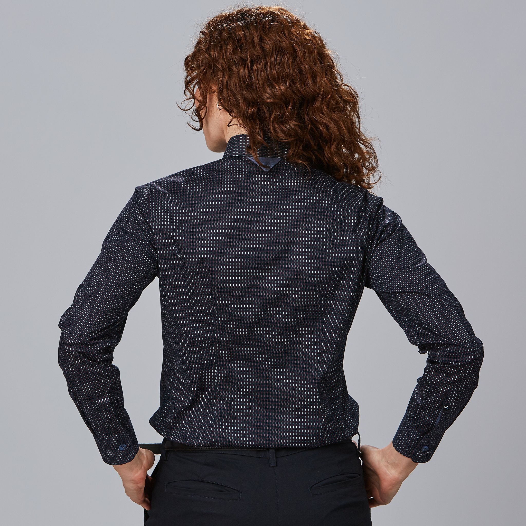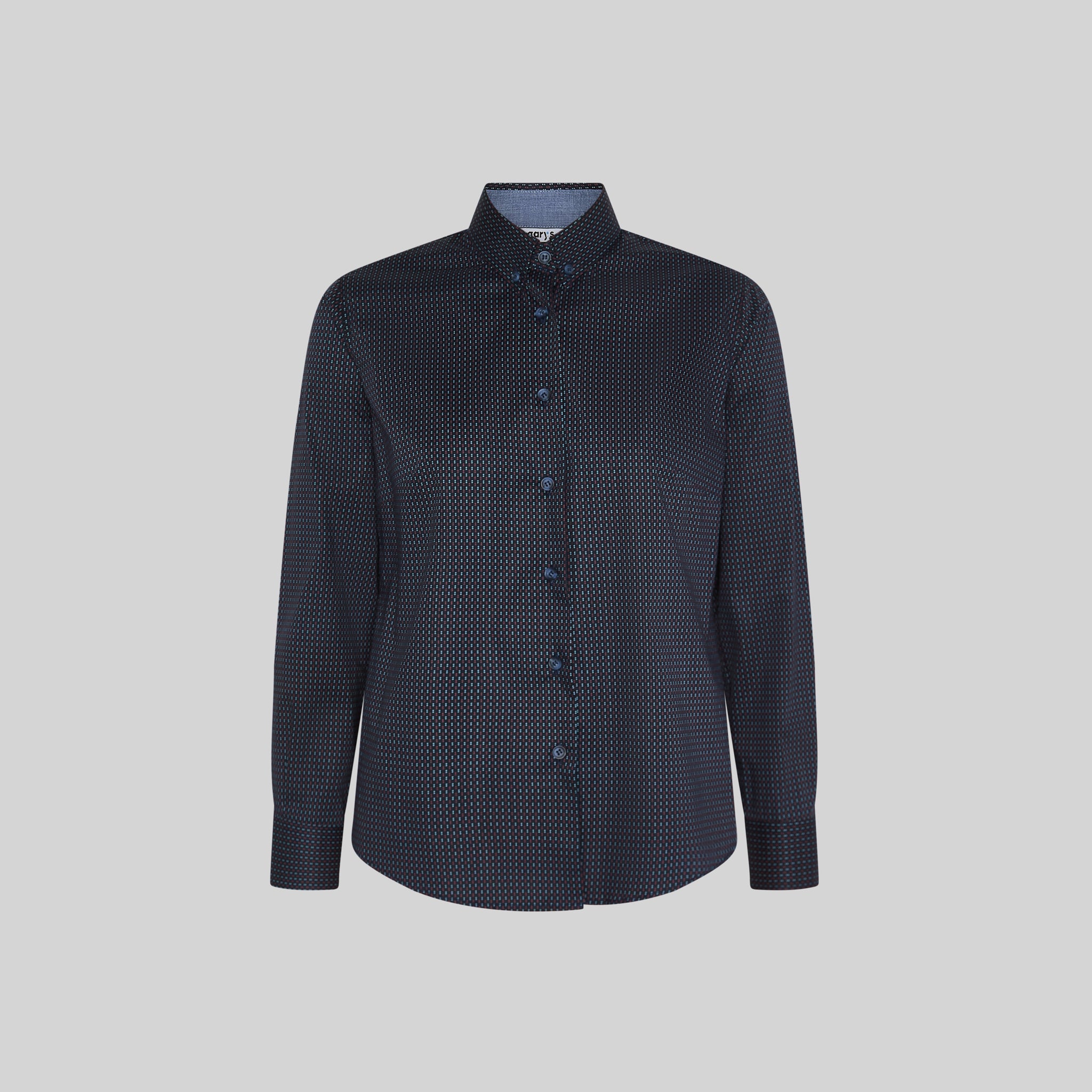 Realizzata in misto cotone (97%) ed elastan (3%), questa camicia a maniche lunghe offre una vestibilità morbida ed elasticizzata per essere indossata comodamente tutto il giorno. Disponibile con una stampa a pois blu, aggiunge un tocco di stile classico alla vostra uniforme. Il colletto a camicia e l'abbottonatura anteriore a destra-sinistra con bottoni a vista offrono una finitura raffinata e tradizionale. Le pinces sulla schiena e sul petto assicurano una vestibilità femminile e lusinghiera. Polsini a sardina per un dettaglio elegante e polsini delle maniche con polsini da camicia per un tocco di stile in più. Lavabile a 40°C per una facile manutenzione e praticità. Perfetta per le uniformi del settore retail e hospitality, questa camicia combina qualità, eleganza e funzionalità per distinguersi in qualsiasi ambiente di lavoro.