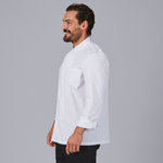 Questa giacca è progettata per adattarsi a uomini e donne, con un taglio semi-aderente che offre un look elegante senza sacrificare il comfort. La cucitura sul retro offre una vestibilità comoda e consente una maggiore libertà di movimento. Le maniche lunghe con polsini risvoltati offrono versatilità e comfort in diverse condizioni di lavoro, consentendo ai professionisti della cucina di regolare la lunghezza delle maniche in base alle proprie preferenze. La chiusura incrociata con bottoni a losanga a vista non è solo funzionale, ma aggiunge anche un tocco di stile e autenticità alla giacca. I bottoni sono visibili e aggiungono un tocco classico. Il colletto mao aggiunge un tocco contemporaneo ed elegante al design della giacca, facendola risaltare nell'ambiente di lavoro. La tasca sul petto a sinistra è pratica per riporre piccoli utensili da cucina o attrezzi, per tenerli a portata di mano durante la preparazione dei cibi. La giacca è realizzata in twill bianco, un tessuto robusto e durevole che resiste alle esigenze della cucina professionale. Il bianco è un colore classico che rispecchia l'igiene ed è facile da pulire. Questa giacca da cucina è un capo essenziale per cuochi e chef che vogliono mantenere un aspetto professionale in cucina. Sostituisce il riferimento: 910000.