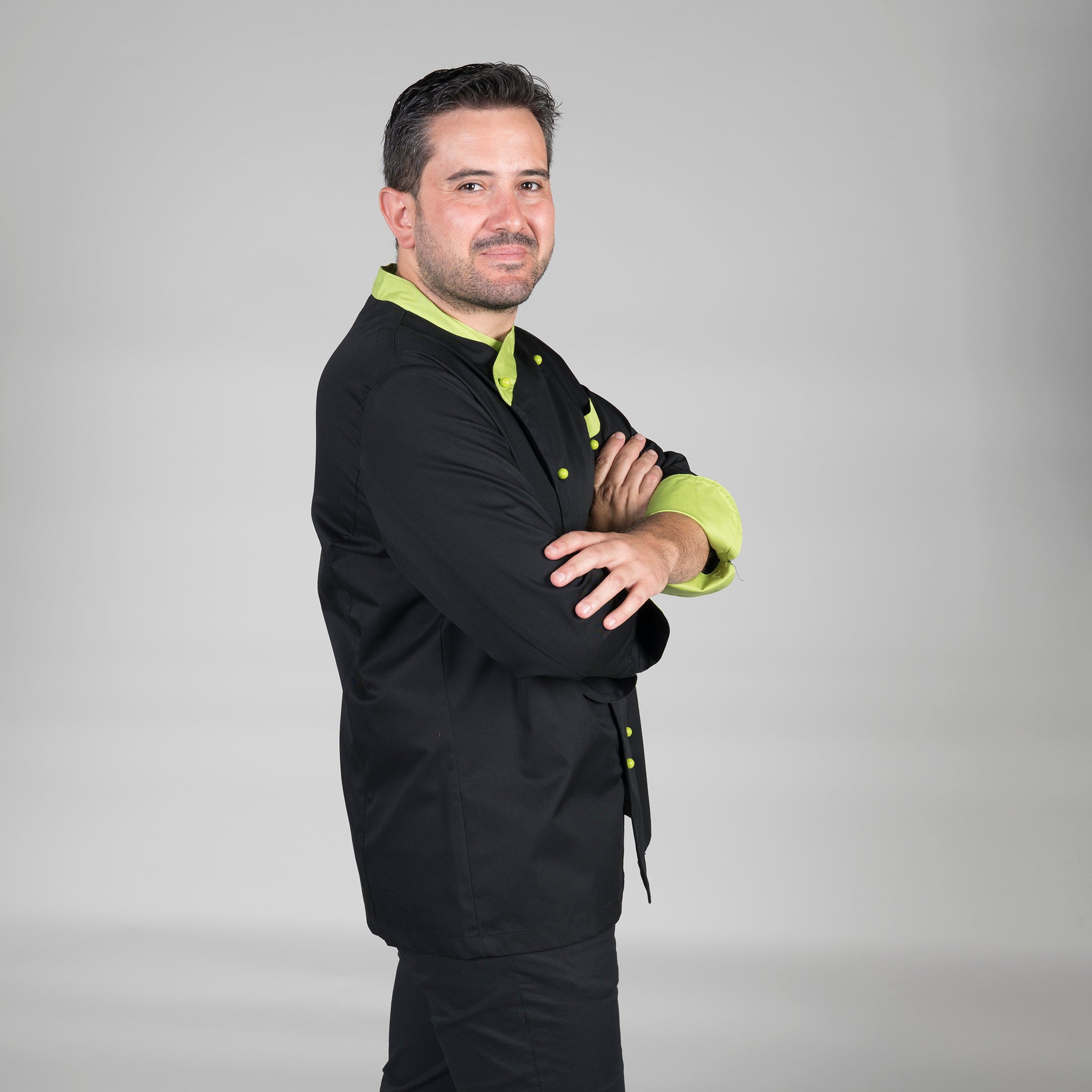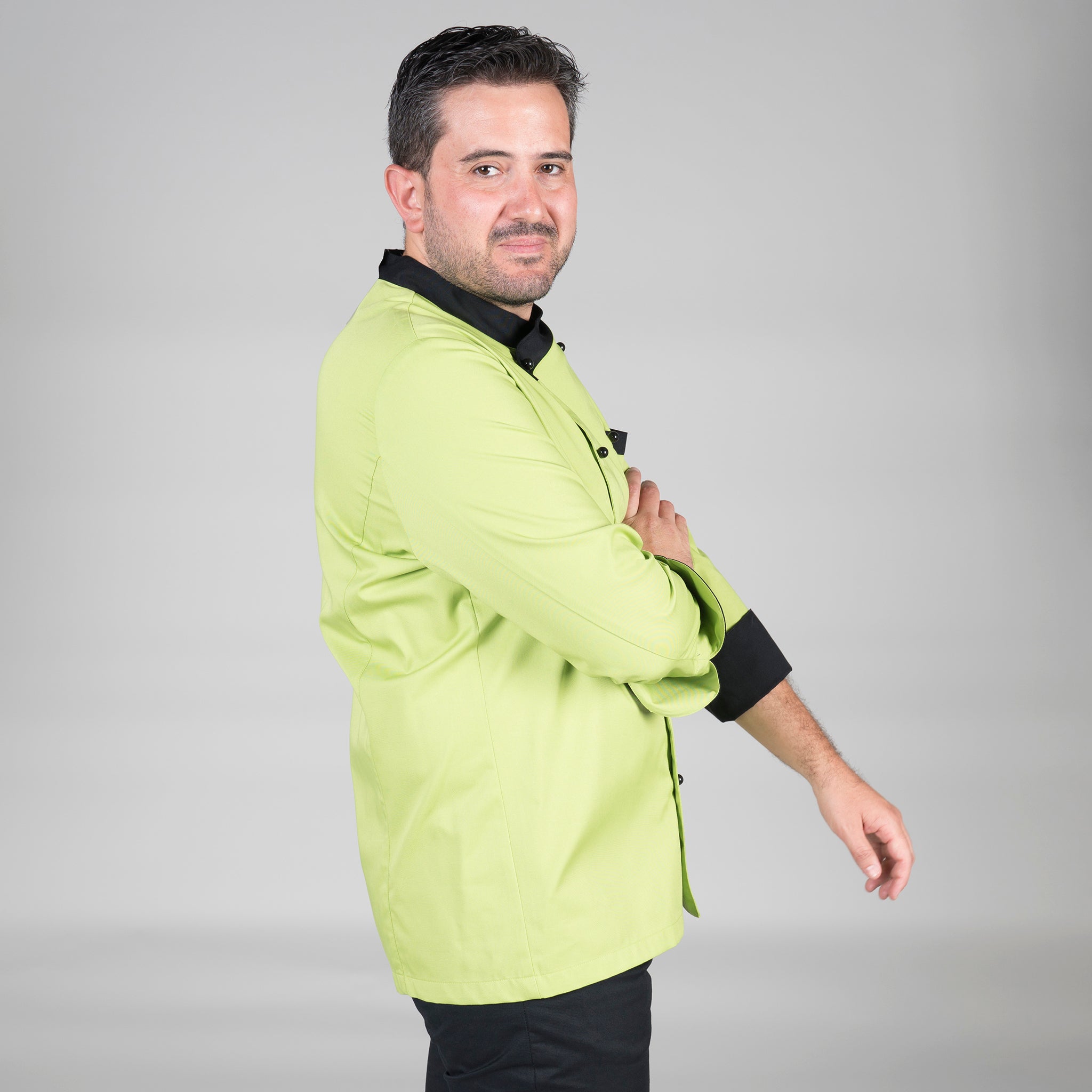 Questa giacca è progettata per adattarsi sia agli uomini che alle donne ed è disponibile a maniche lunghe, garantendo versatilità e una protezione adeguata per tutto l'anno. Il capo si chiude in modo sicuro ed elegante con bottoni a pressione che aggiungono un tocco di stile professionale. La giacca è dotata di una tasca sul petto a sinistra, che offre spazio aggiuntivo per gli utensili da cucina o gli strumenti di lavoro essenziali. Il design ampio e le cuciture posteriori assicurano una vestibilità comoda e consentono un'ampia libertà di movimento, essenziale in un ambiente di cucina attivo. La giacca è realizzata in resistente twill nero, che non solo aggiunge stile, ma garantisce anche durata e facilità di manutenzione. I dettagli color pistacchio su bottoni, colletto, risvolto dei polsini e profili delle tasche aggiungono un tocco di colore e di stile. La giacca viene fornita con bottoni finti dello stesso colore, che consentono di indossarla immediatamente senza dover cercare altri accessori. La giacca da cucina unisex PARIS è la scelta ideale per chi cerca un capo di qualità nel settore della ristorazione.
