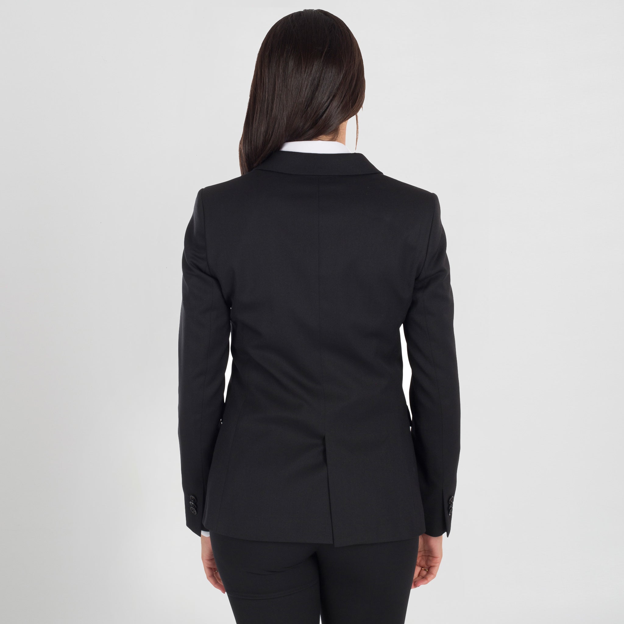 El corte ajustado de esta americana resalta la figura de la mujer, ofreciendo un aspecto moderno y elegante. Las pinzas en el delantero aseguran un ajuste perfecto, lo que permite libertad de movimiento durante las actividades laborales.