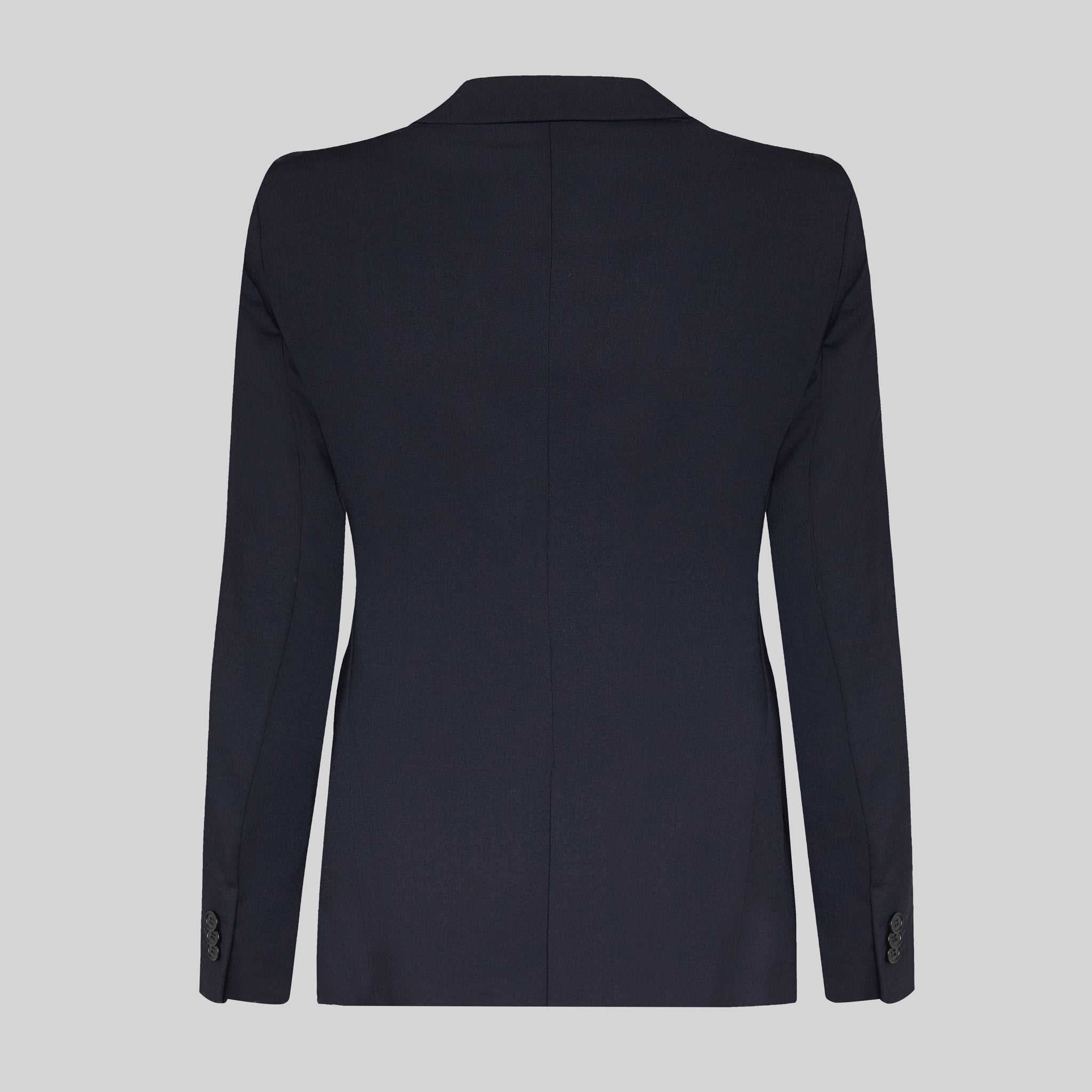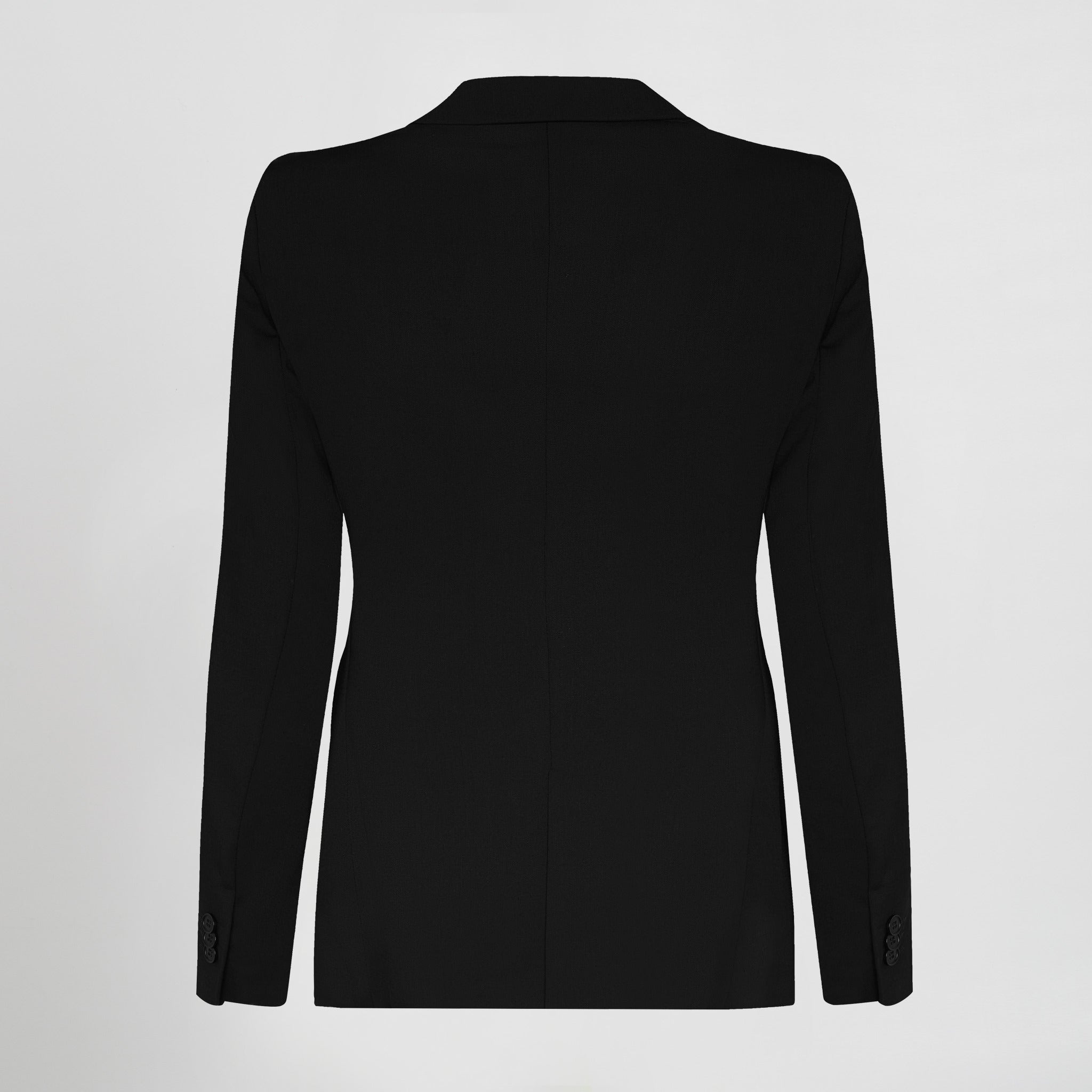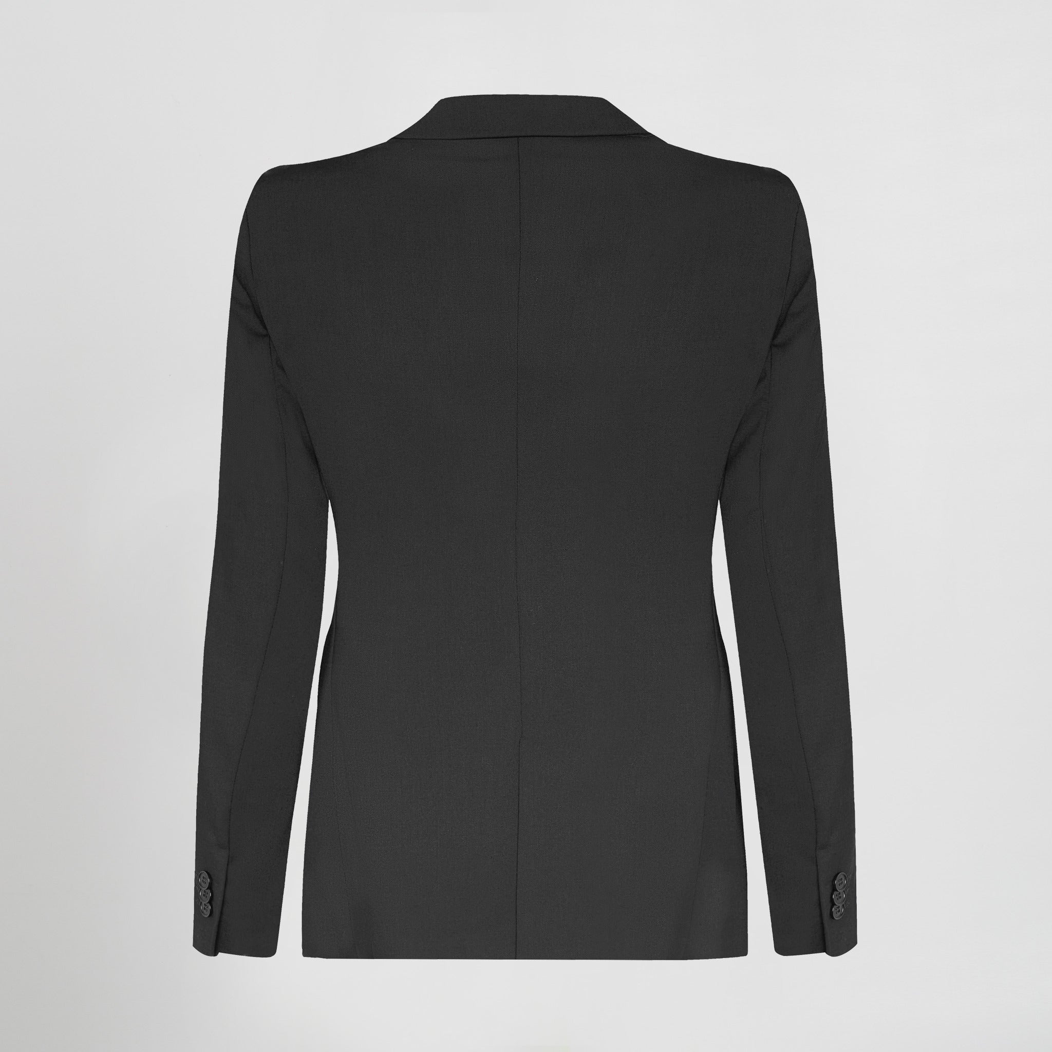 La chaqueta de traje cuenta con un diseño de dos botones en la parte delantera y una abertura trasera central. Estos detalles añaden un toque sofisticado al diseño y permiten una mayor comodidad al sentarse o moverse.