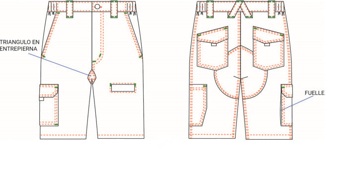 Confeccionada en T400, un tejido elástico revolucionario, esta bermuda presenta goma en los costados de la cintura, trabillas y múltiples bolsillos, incluyendo dos franceses de cadera, dos de parche con tapeta traseros, uno de fuelle con tapeta en la pierna derecha y uno oculto en la pierna izquierda, ideal para llevar dispositivos móviles. Además, cuenta con refuerzos en el cinturón y la entrepierna para mayor durabilidad.