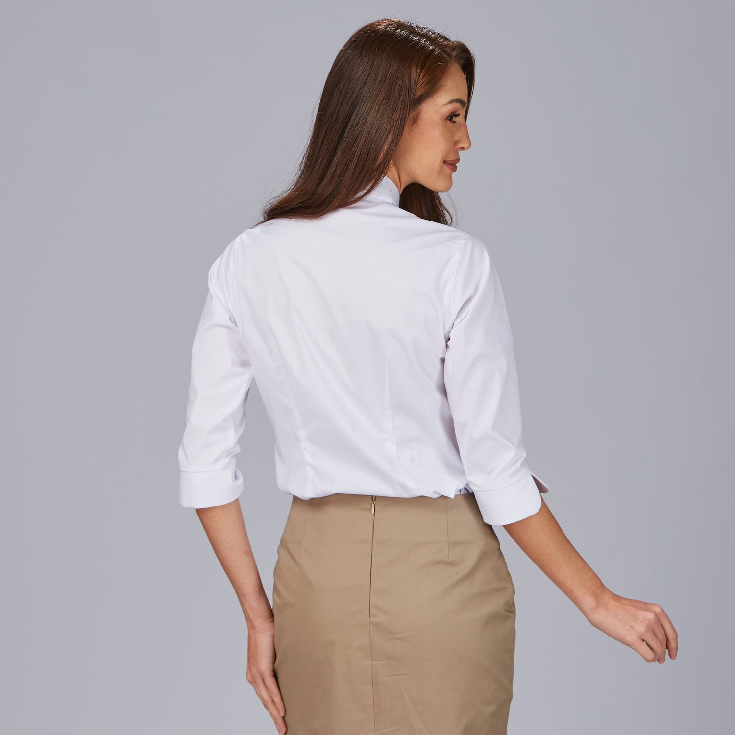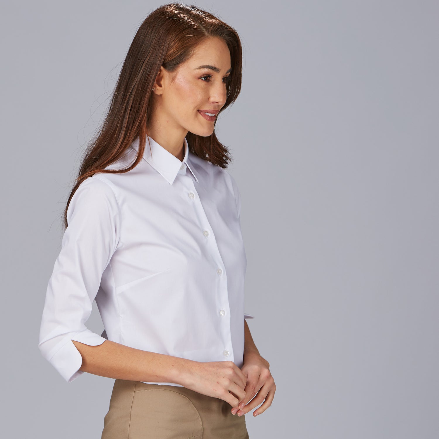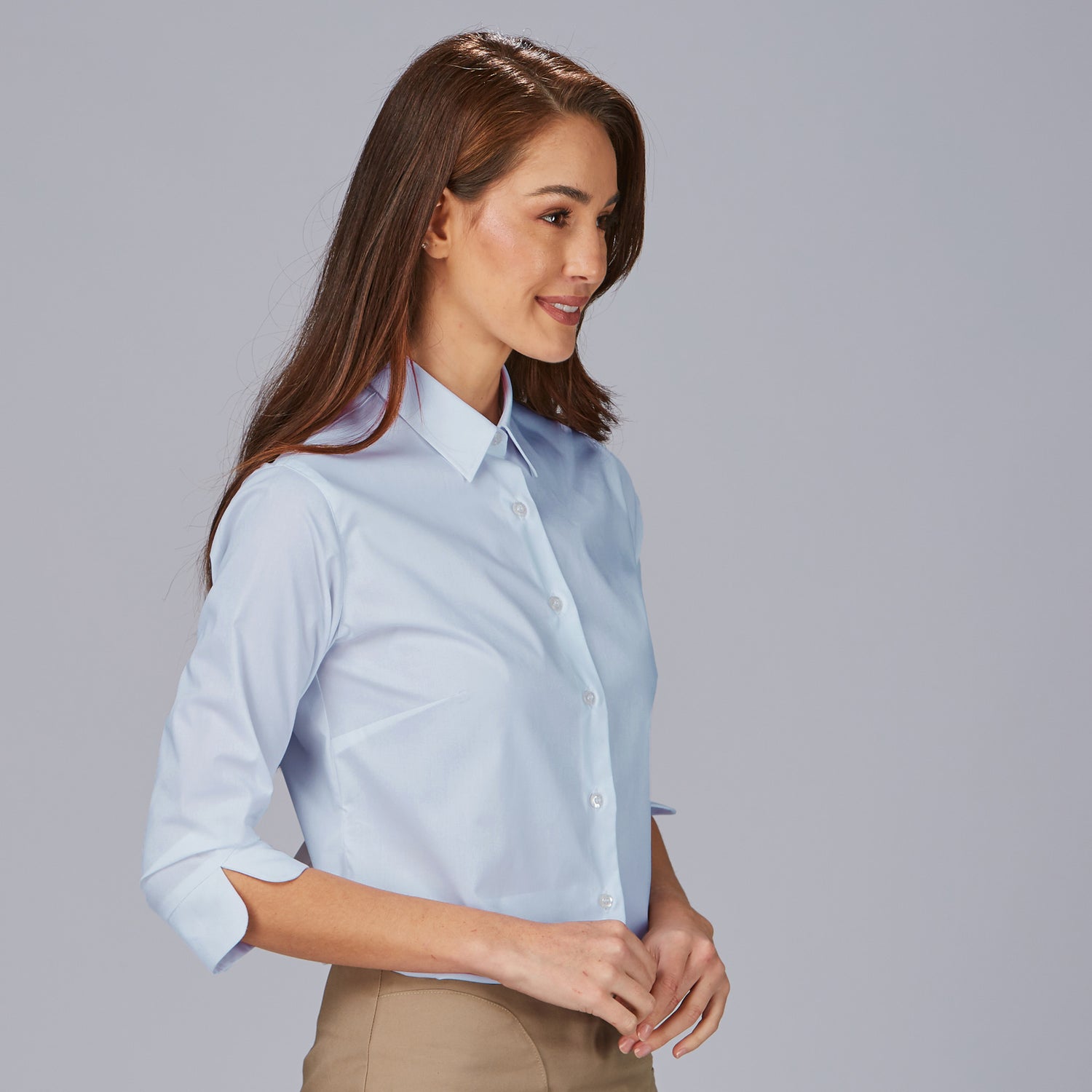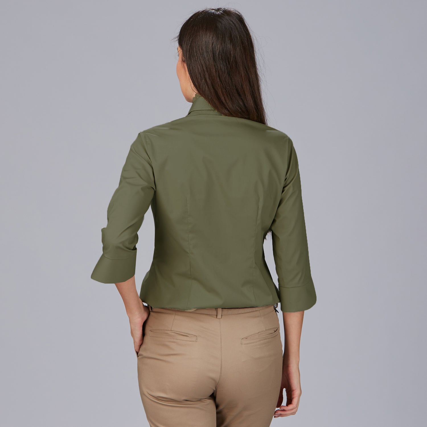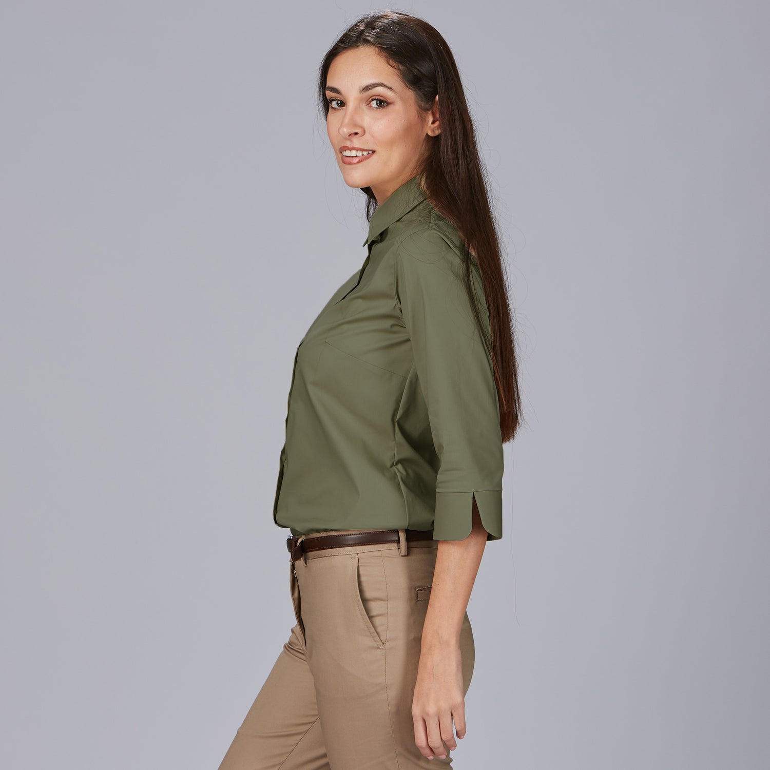 La camisa mujer 3/4 Beatrice es la elección perfecta para quienes buscan una prenda elegante y cómoda en su día a día laboral. Con un diseño holgado que proporciona libertad de movimiento, esta camisa destaca por su cuello camisero clásico y una manga 3/4 con puño abierto en V, que aporta un toque moderno y sofisticado. Su cierre delantero derecho sobre izquierdo y las pinzas en pecho y espalda garantizan una caída favorecedora y una silueta estilizada.