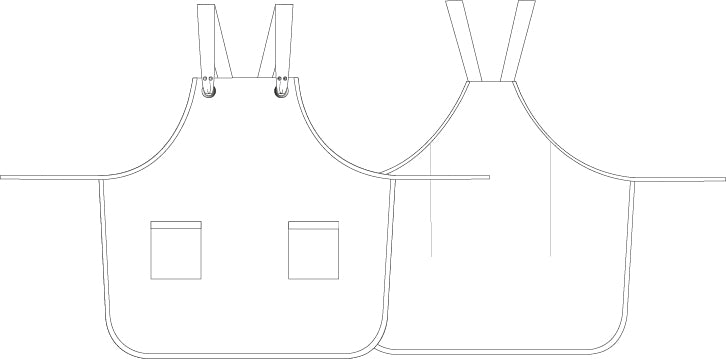 Los 2 bolsillos frontales sublimados no solo aportan un toque visual llamativo, sino que también resultan prácticos para el trabajo diario. Sus tirantes con remaches metálicos y las sisas acabadas con bies en color albero añaden detalles de estilo y durabilidad al conjunto.