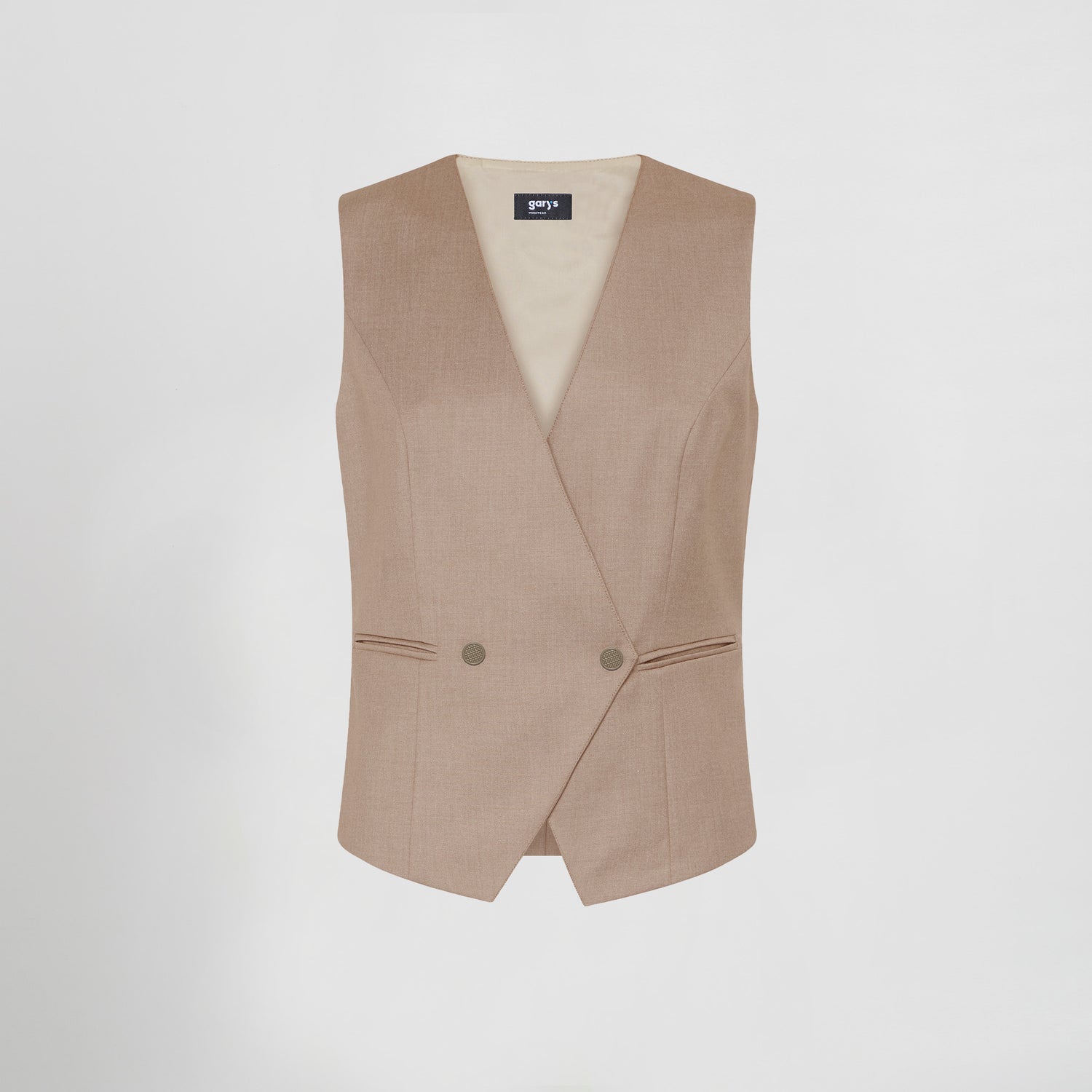 * Diseño cruzado en pico con cierre de dos botones frontales