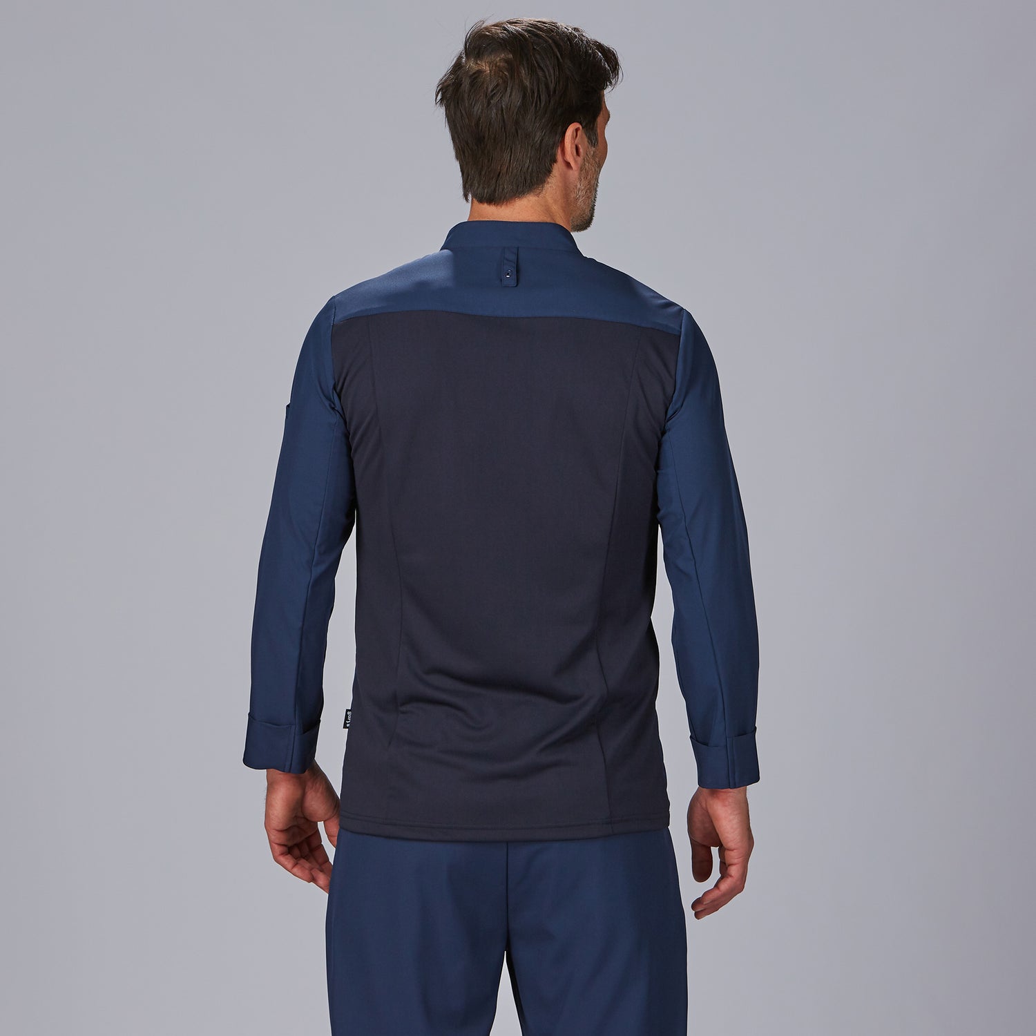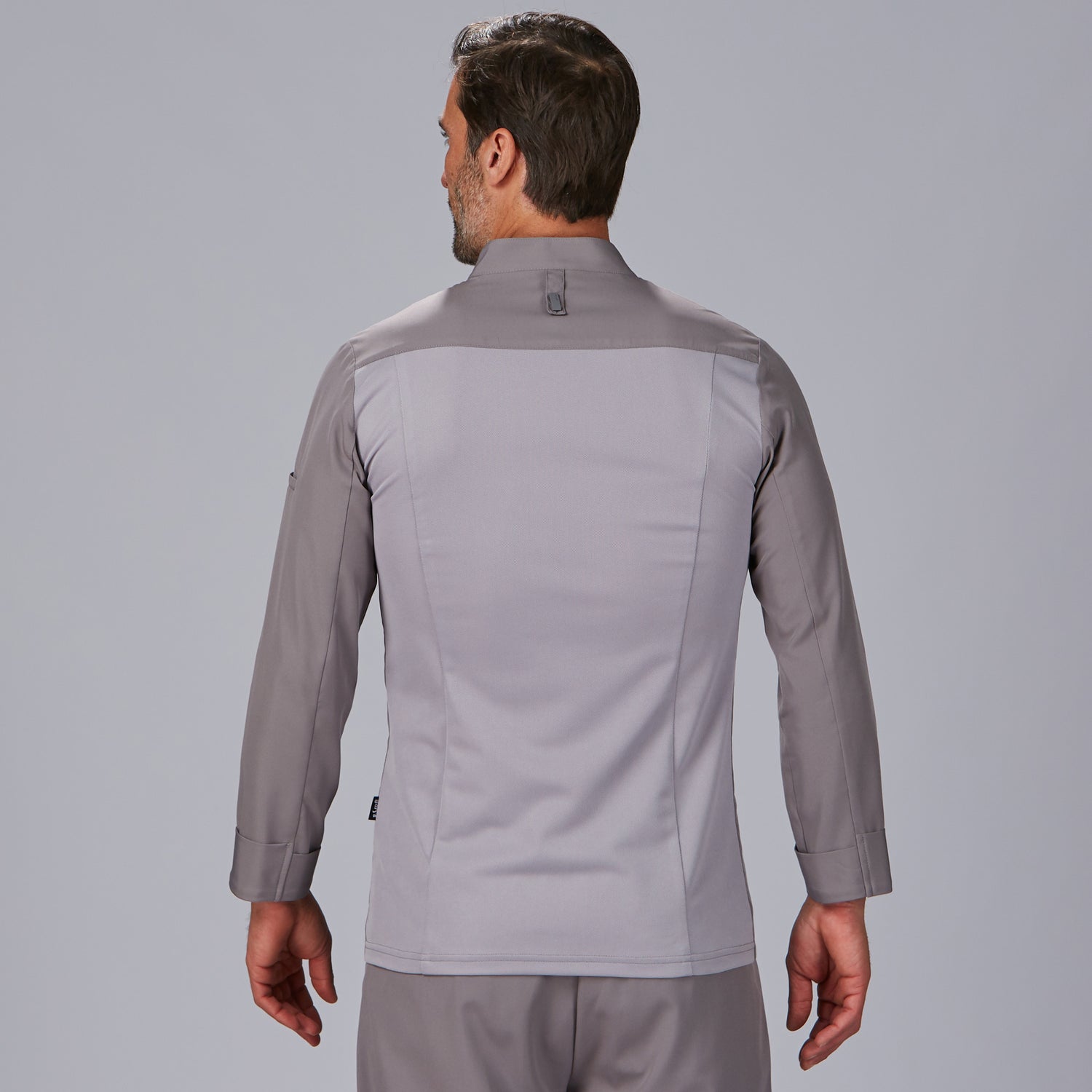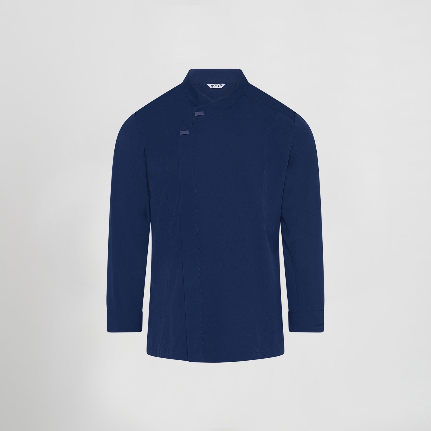 Su cuello tipo mao y cierre delantero izquierdo sobre derecho con 4 botones ocultos y dos plaquitas Zamak, garantizan un aspecto elegante y sofisticado. El canesú en la espalda y los costadillos laterales proporcionan un ajuste perfecto y mayor libertad de movimiento. Además, cuenta con tejido Air Dry en la pieza central, lo que facilita la transpiración y mantiene la temperatura ideal mientras trabajas.