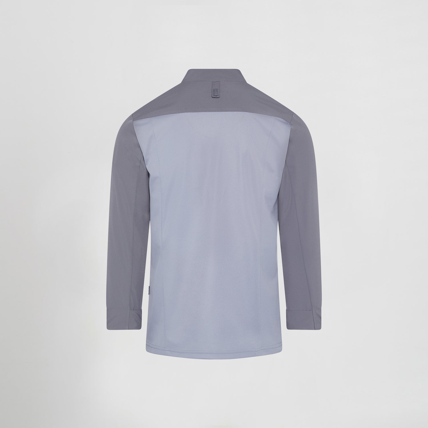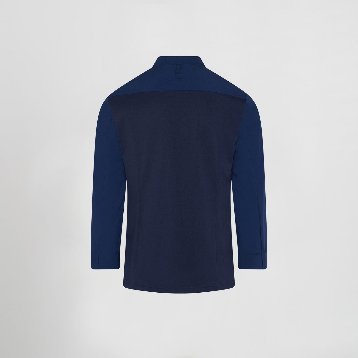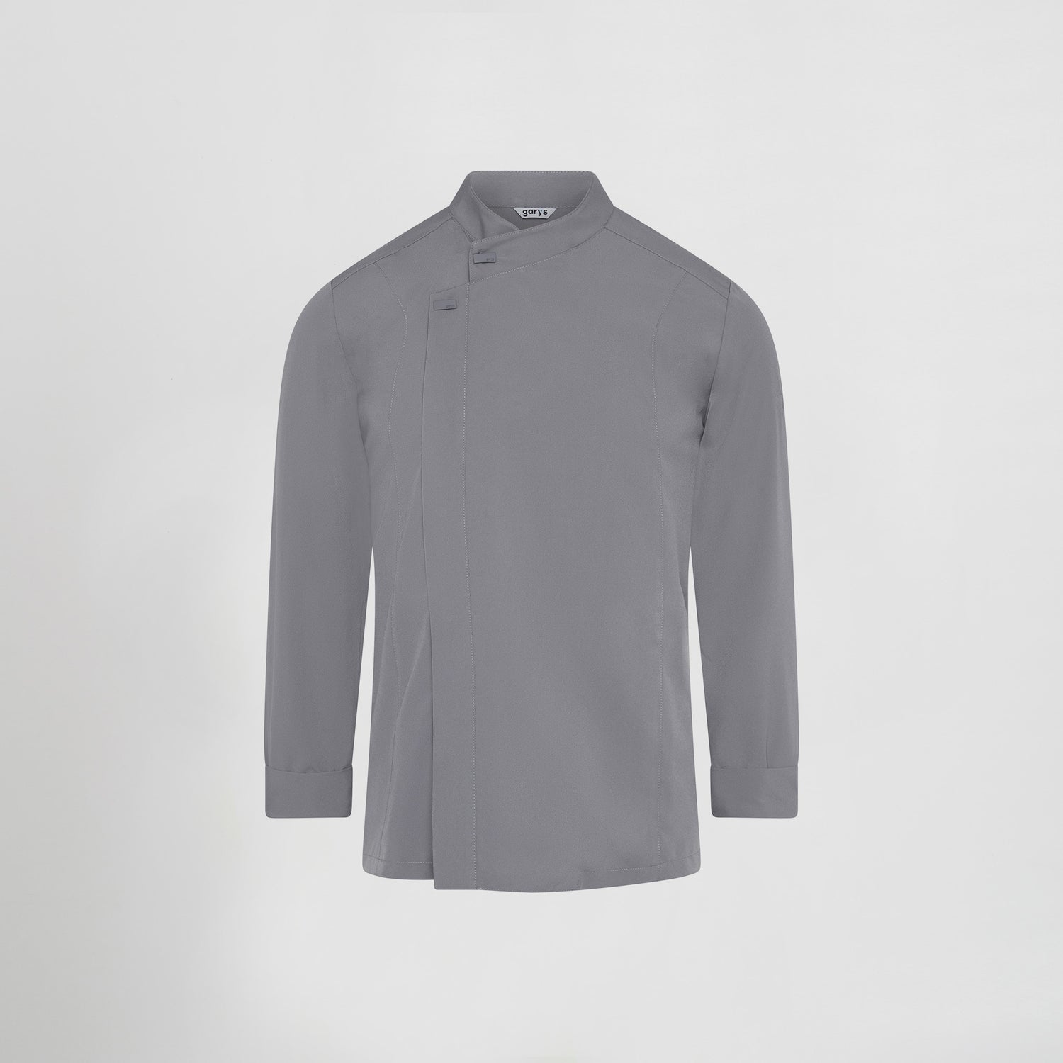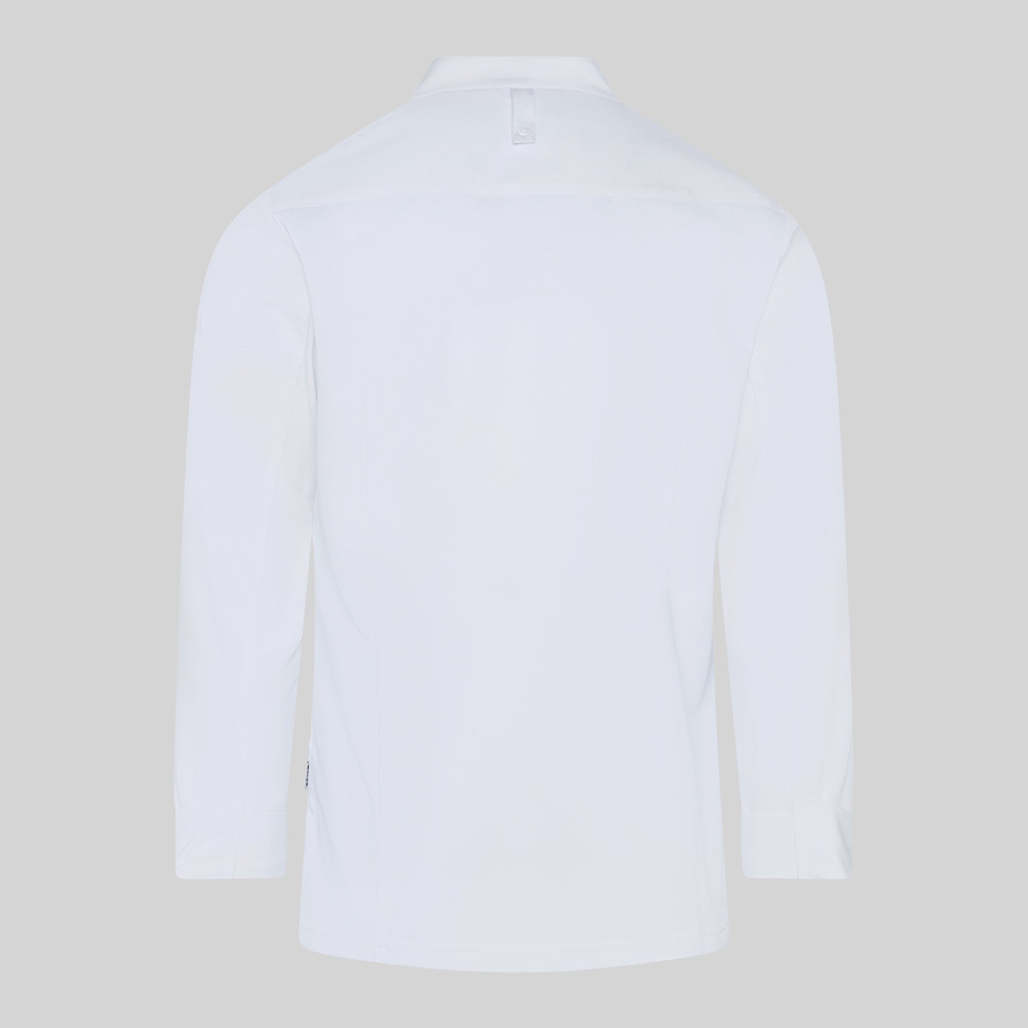 Su cuello tipo mao y cierre delantero izquierdo sobre derecho con 4 botones ocultos y dos plaquitas Zamak, garantizan un aspecto elegante y sofisticado. El canesú en la espalda y los costadillos laterales proporcionan un ajuste perfecto y mayor libertad de movimiento. Además, cuenta con tejido Air Dry en la pieza central, lo que facilita la transpiración y mantiene la temperatura ideal mientras trabajas.