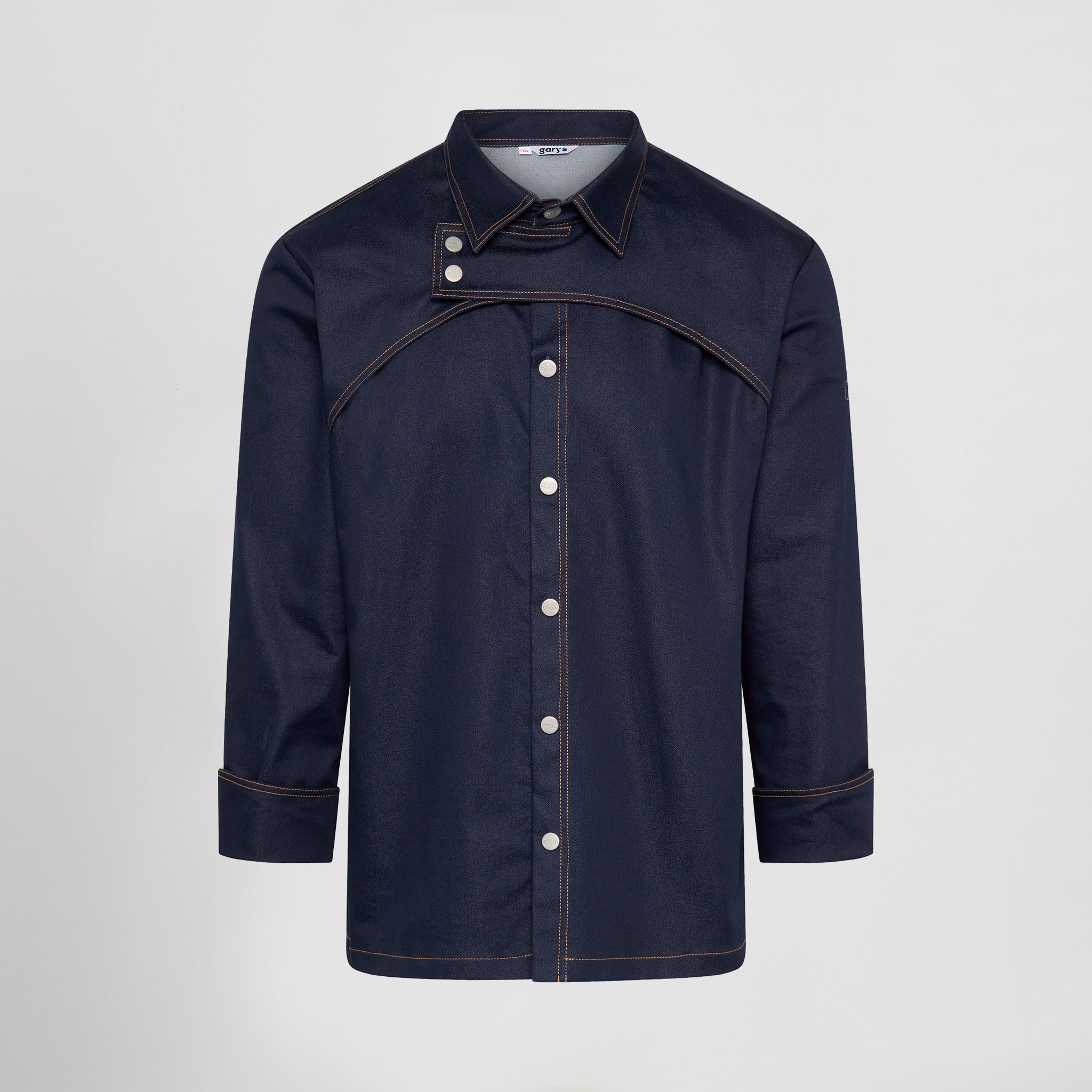 Confeccionada en tejano 65% algodón, 32% poliéster y 3% elastano (190 gr/m²), esta prenda ofrece resistencia, flexibilidad y durabilidad, asegurando un ajuste cómodo sin perder estilo. Su acabado en tejano le otorga un aspecto moderno y versátil, ideal para cocinas profesionales y restaurantes de vanguardia.