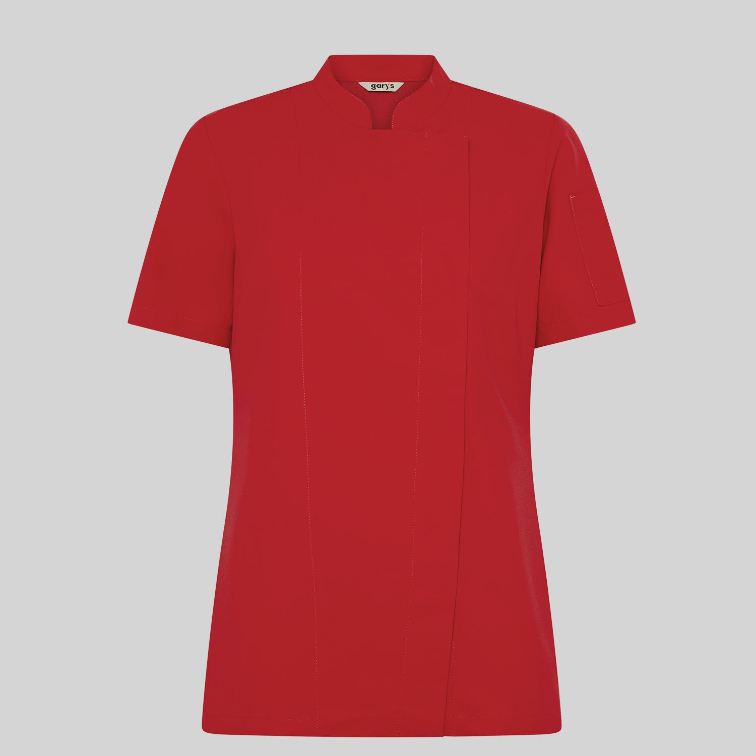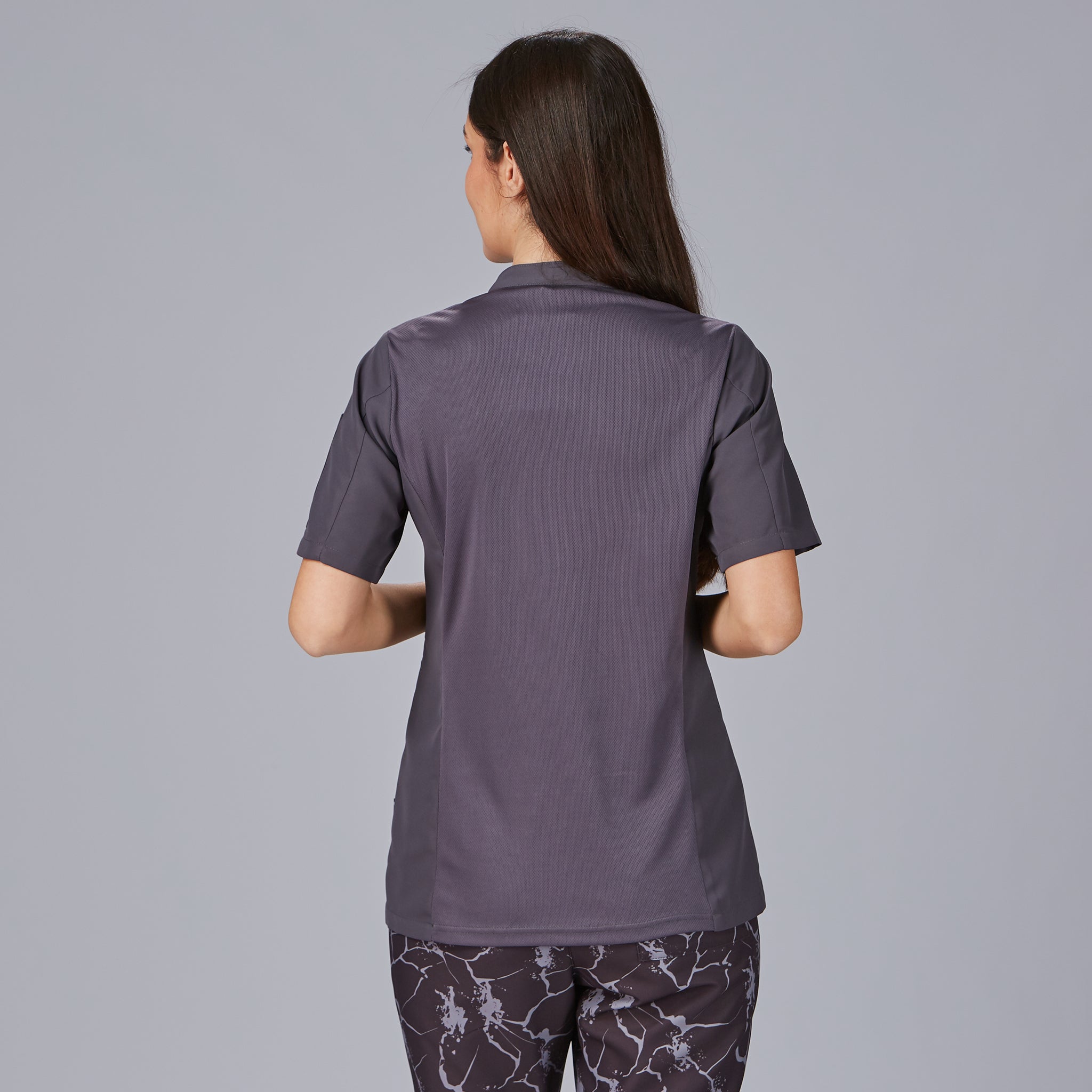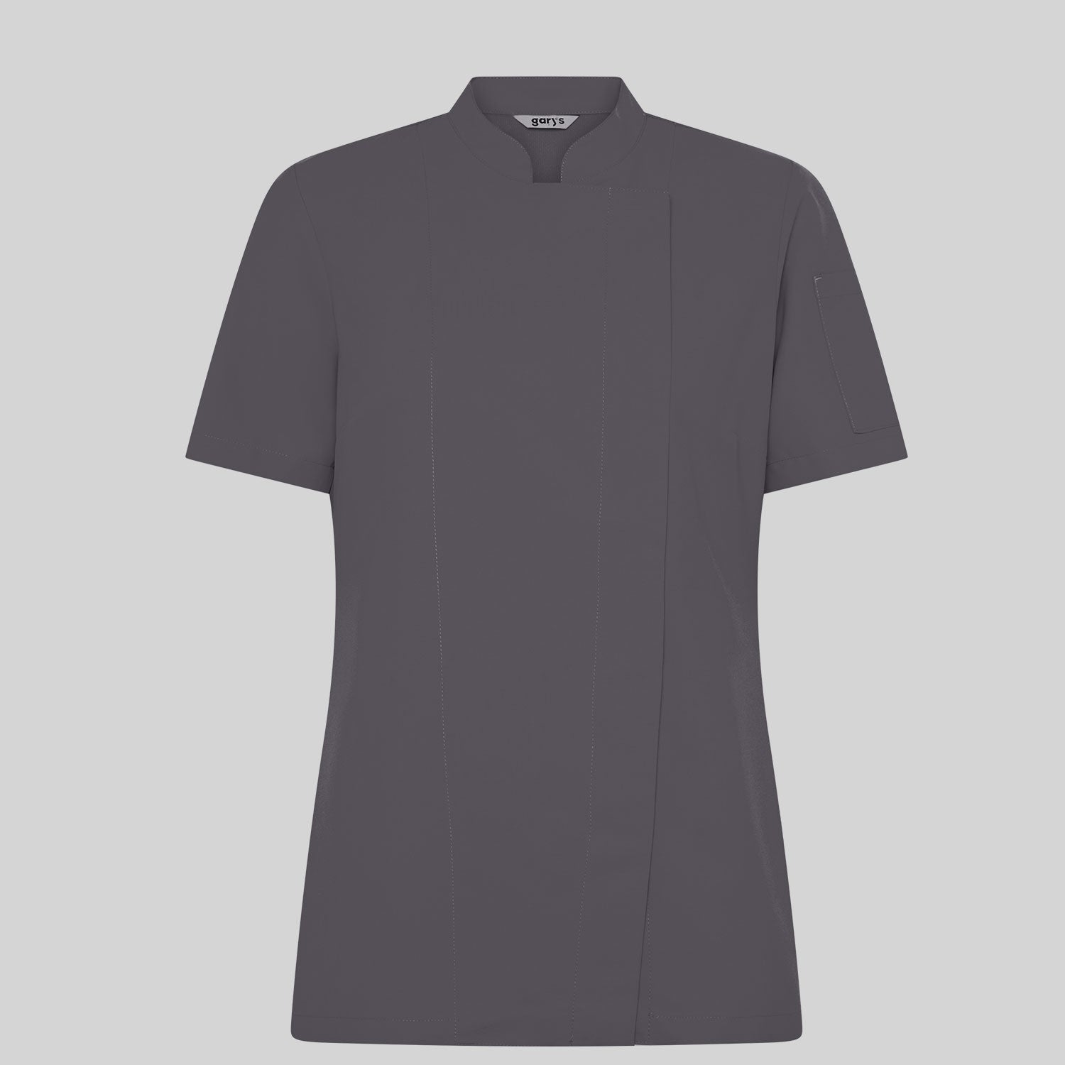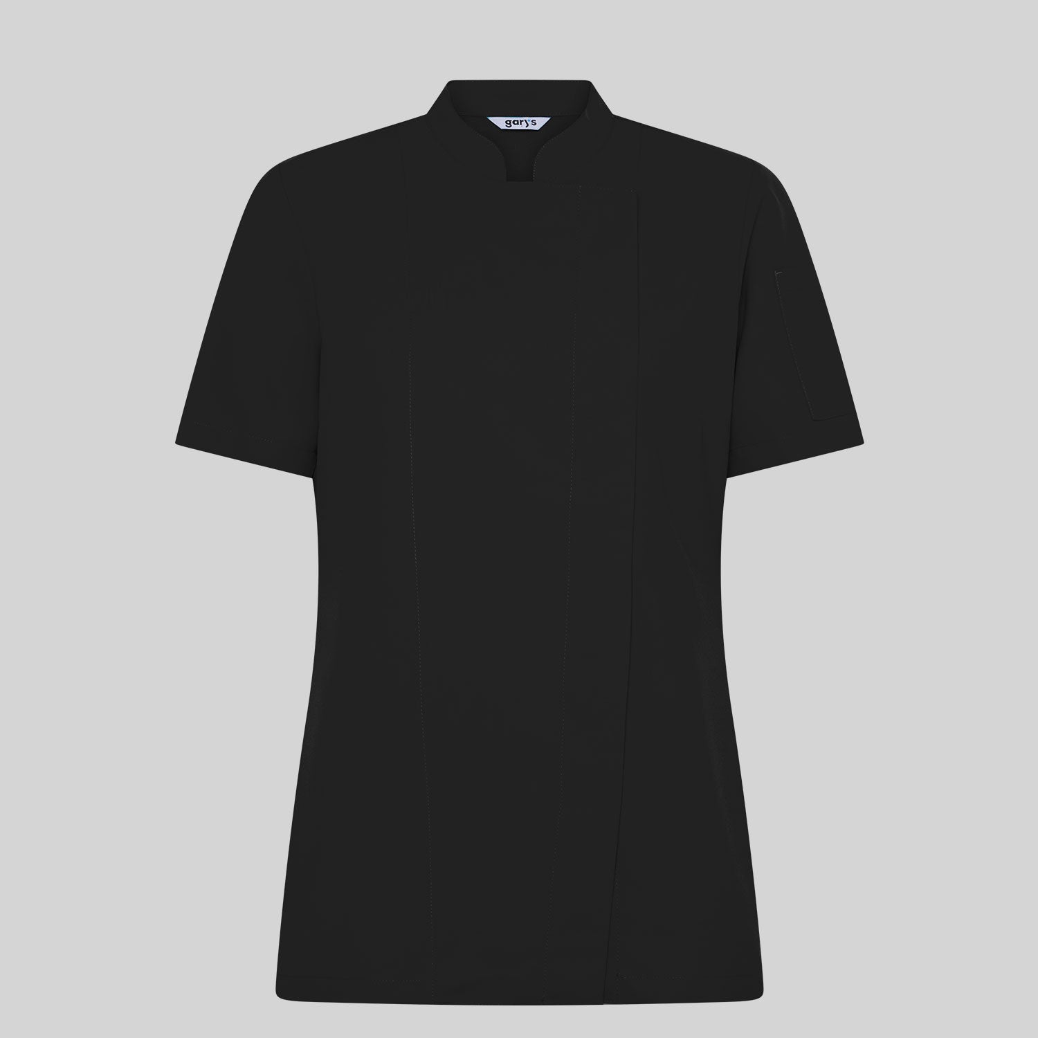 Esta chaqueta está confeccionada para combinar estilo y funcionalidad. Presenta una manga corta y un cuello mao, lo que le da un aspecto elegante. Además, cuenta con un bolsillo en la manga izquierda y un cierre cruzado mediante botones de presión ocultos. Su diseño semi ajustado, con pinzas en el pecho y costadillos en la espalda, asegura un ajuste perfecto y cómodo.