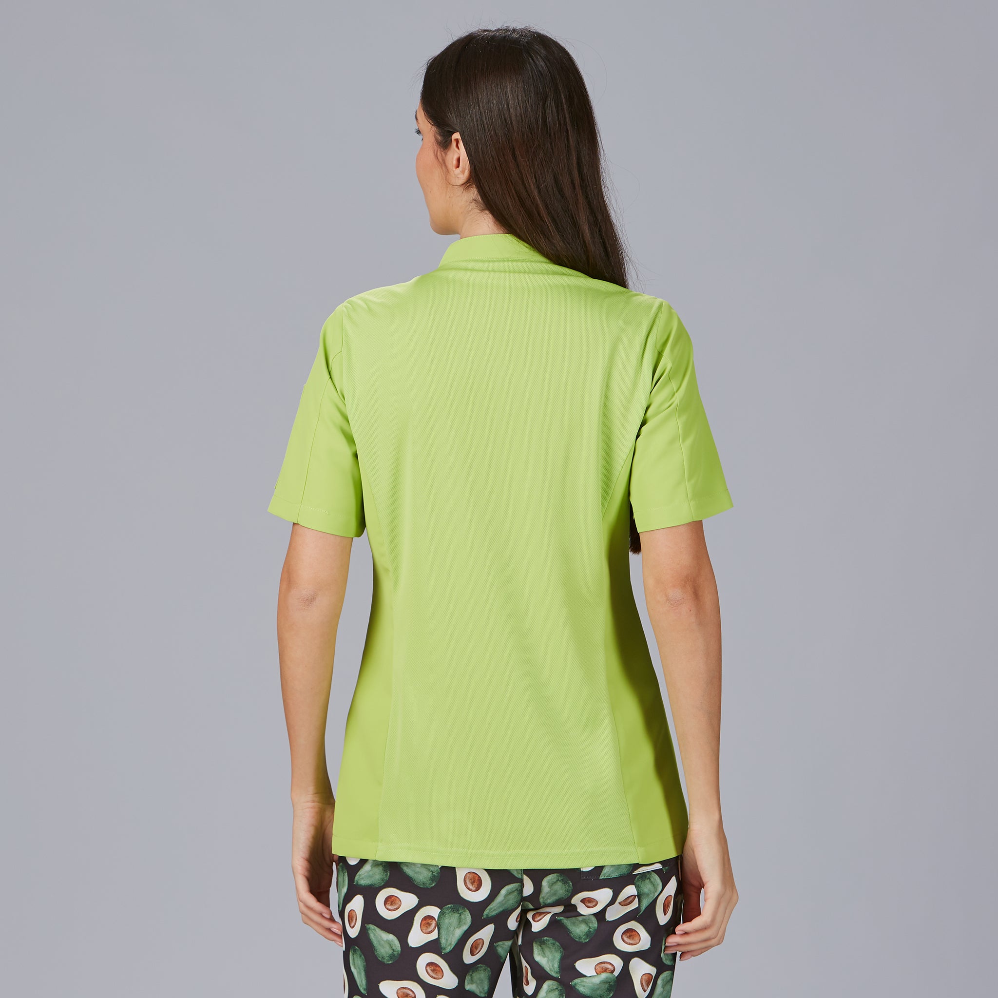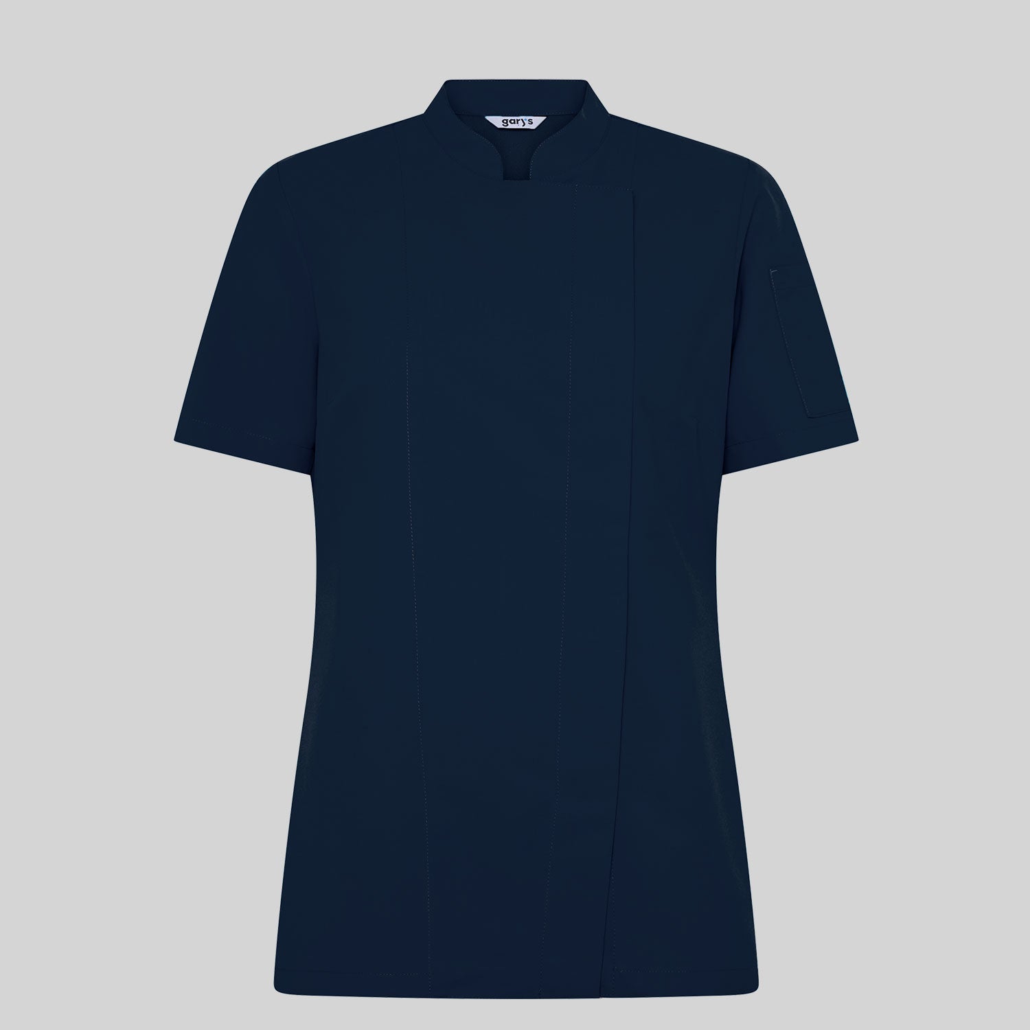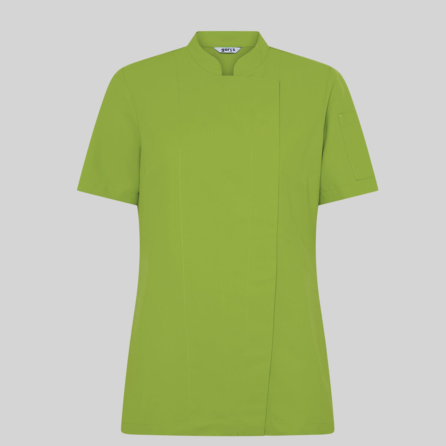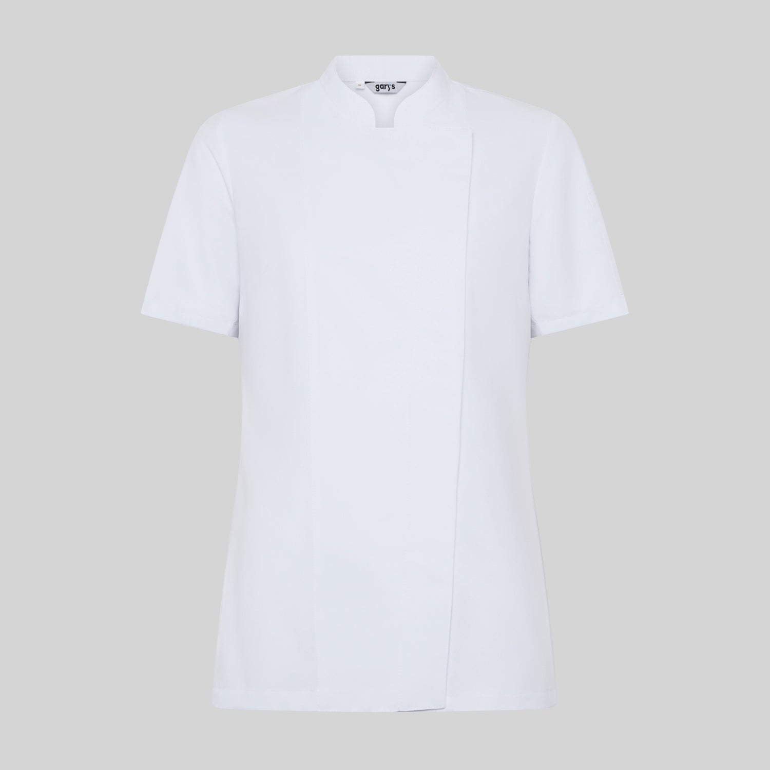Esta chaqueta está confeccionada para combinar estilo y funcionalidad. Presenta una manga corta y un cuello mao, lo que le da un aspecto elegante. Además, cuenta con un bolsillo en la manga izquierda y un cierre cruzado mediante botones de presión ocultos. Su diseño semi ajustado, con pinzas en el pecho y costadillos en la espalda, asegura un ajuste perfecto y cómodo.