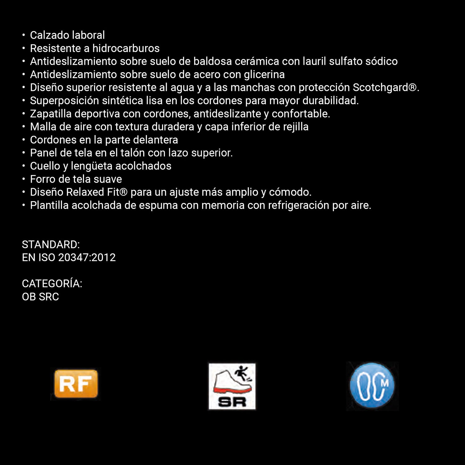 • Suela antideslizante nivel "SR" testada en baldosa y acero.