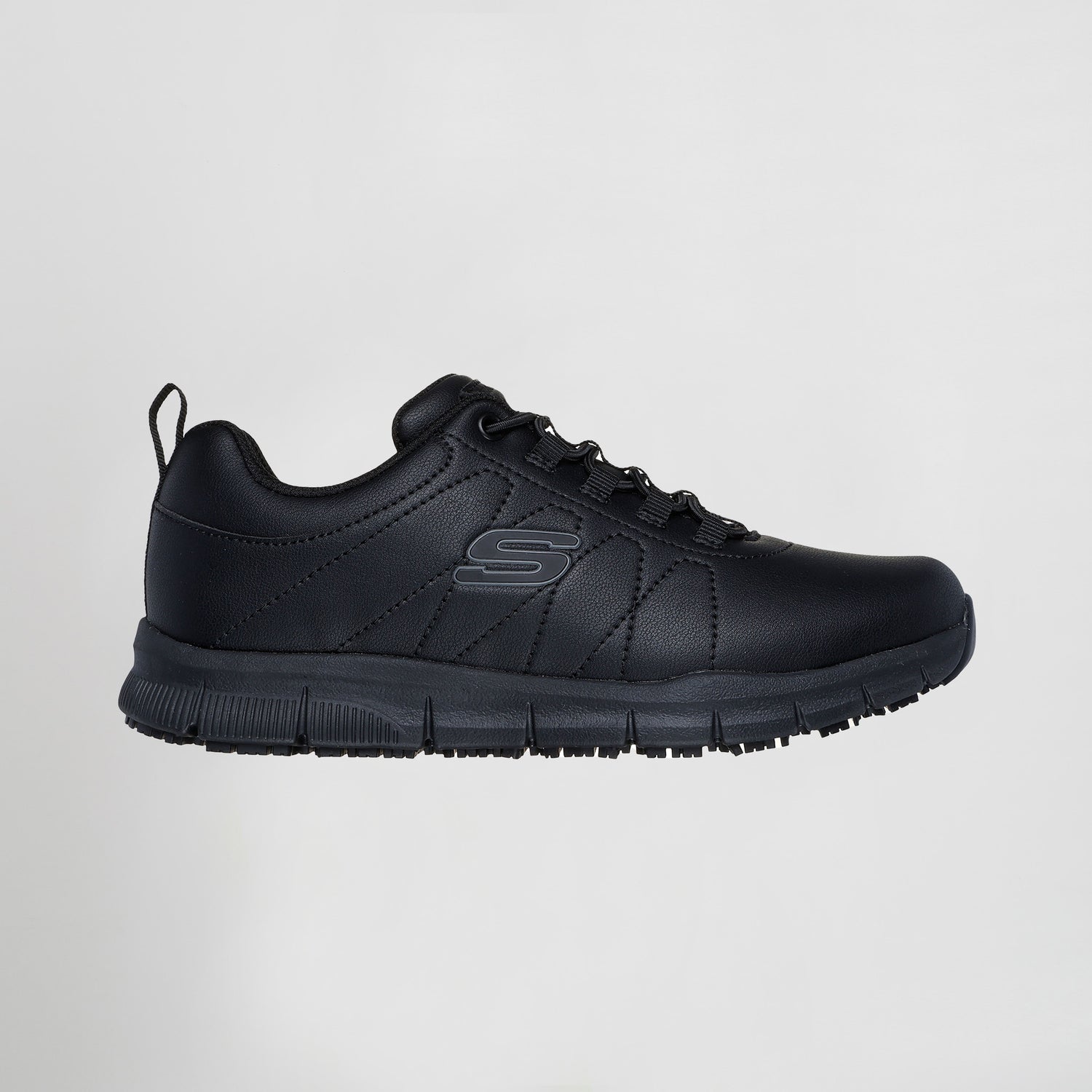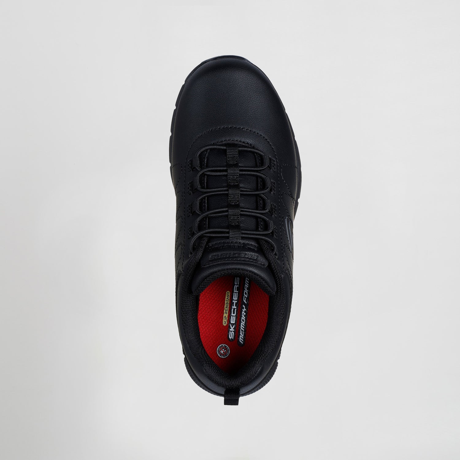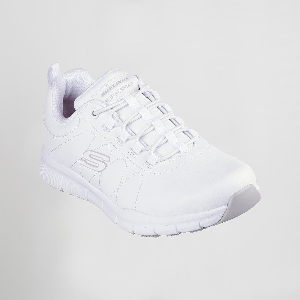 La comodidad y la seguridad se combinan en Skechers Work™: Nampa - Beja. Este diseño antideslizante cuenta con una parte superior sintética lisa con detalles de costuras, cordones elásticos y una plantilla acolchada Skechers Memory Foam™.