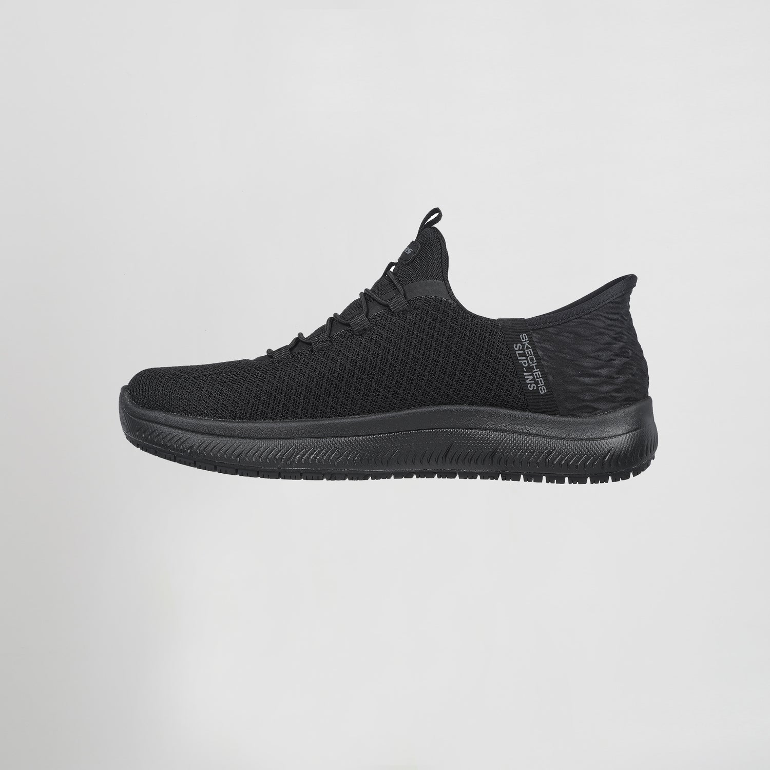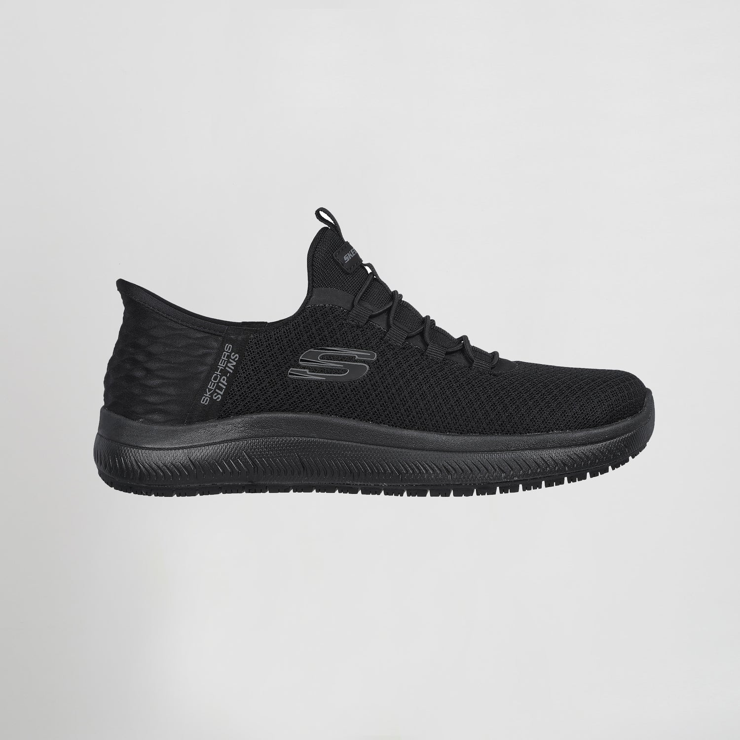 Experimenta la seguridad antideslizante con la comodidad del calzado antideslizante Skechers Hands Free Slip-ins® Work™: Summits SR - Enslee. Este estilo de trabajo TOUCHLESS FIT® cuenta con una malla de punto y parte superior sintética con nuestro exclusivo Heel Pillow™, una suela antideslizante, además de una plantilla de confort acolchada Skechers Air-Cooled Memory Foam®.