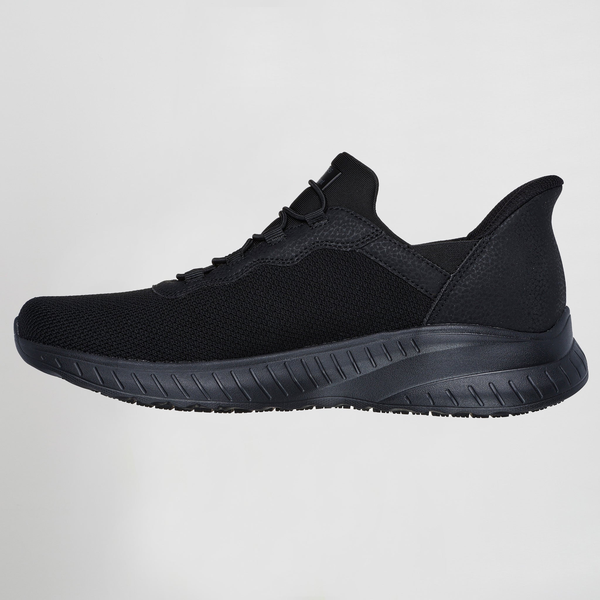 Mantén la seguridad y la comodidad durante todo el día con las Skechers Slip-ins® Work™: Squad Chaos SR - Stivig. Diseñadas con nuestra tecnología Heel Pillow®, estas zapatillas deportivas antideslizantes cuentan con una parte superior sintética y de malla con cordones elásticos y una plantilla acolchada Skechers Air-Cooled Memory Foam® para mayor comodidad.