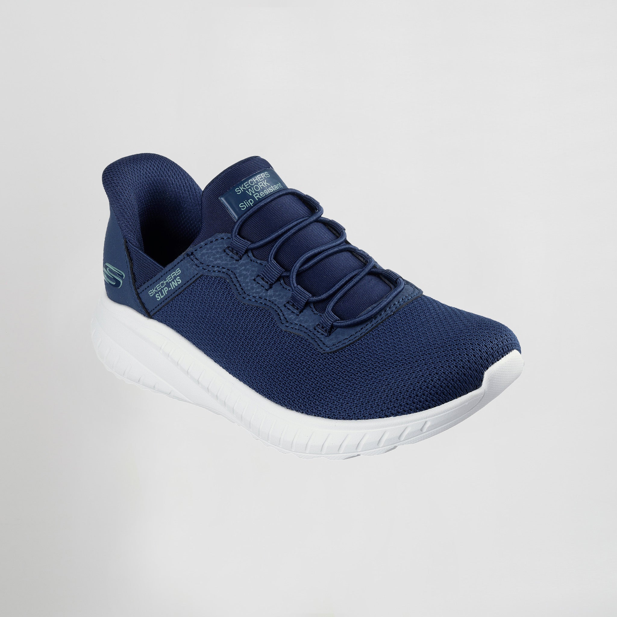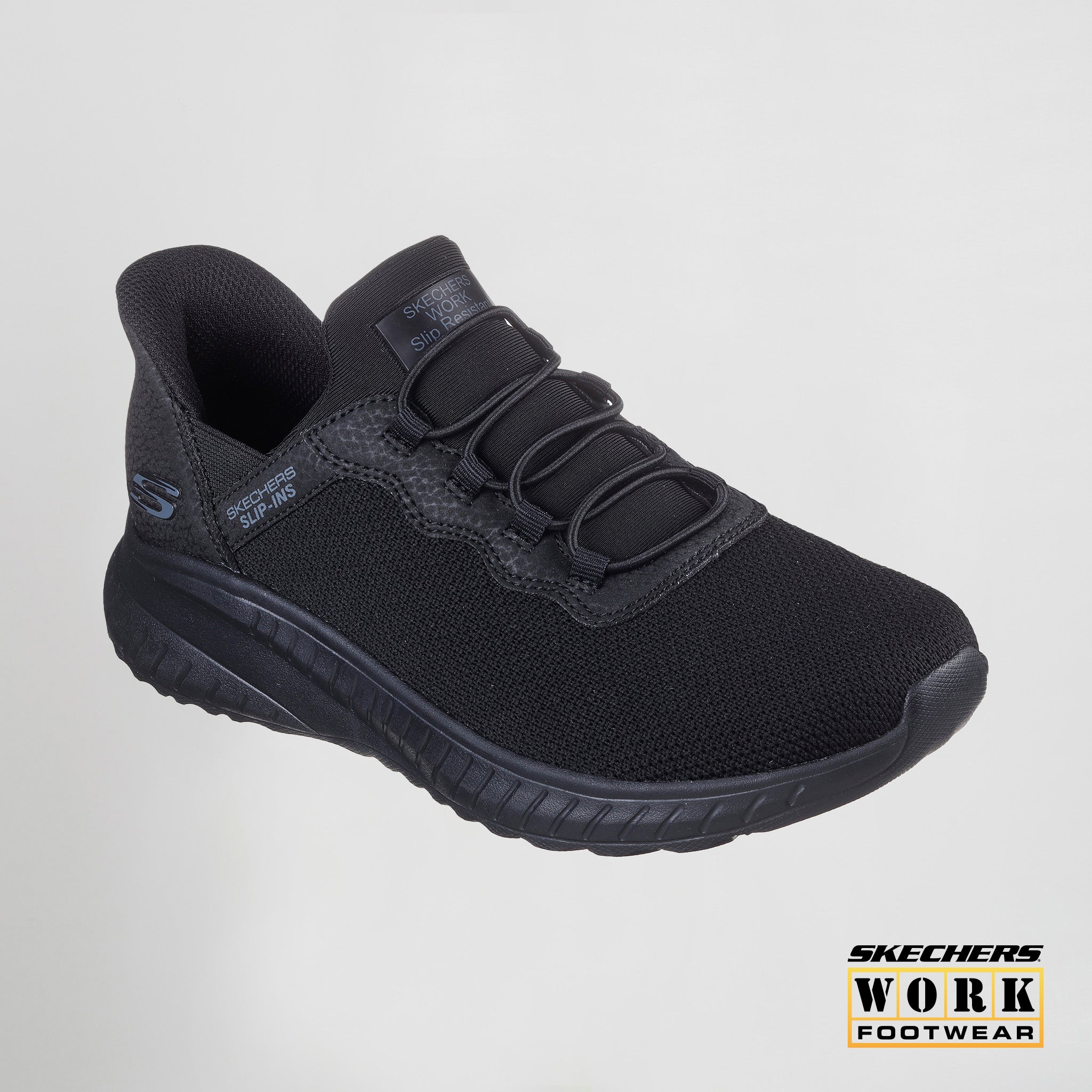 Manténte seguro y como durante todo el día con las Skechers Hands Free Slip-ins® Work™: Squad Chaos SR - Jasul. Diseñadas con nuestra tecnología Heel Pillow®, estas zapatillas deportivas antideslizantes cuentan con una parte superior de malla y material sintético con cordones elásticos y una plantilla acolchada Skechers Air-Cooled Memory Foam® para mayor comodidad.