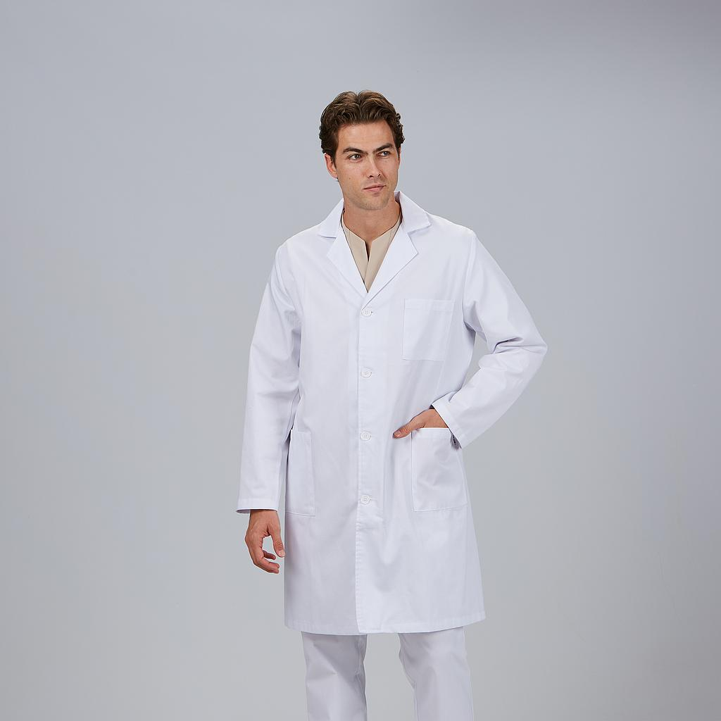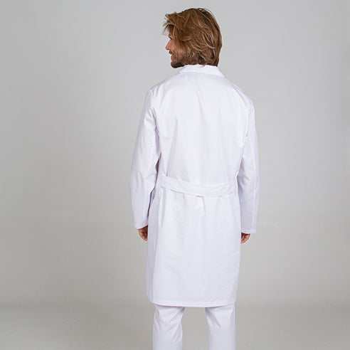 Este roupão masculino de manga comprida foi concebido para oferecer funcionalidade, durabilidade e uma imagem cuidada em ambientes profissionais que exigem desempenho e estilo. Com um corte (H2) semi-ajustado e um comprimento aproximado de 105 cm, esta bata proporciona liberdade de movimentos sem perder estrutura nem presença. É confecionada em tecido SARJA 65% PES 35% CO - 200 gr/m², ideal para trabalhos que exigem peças de vestuário duradouras e de fácil manutenção. A gola com lapela, as mangas compridas e o fecho frontal com botões de pressão compõem um design clássico e profissional, perfeito para setores como saúde, indústria, educação ou limpeza técnica. Possui costuras nas costas para maior ajuste e conforto, três bolsos frontais funcionais e um cinto traseiro que permite melhorar o caimento da peça e dar forma à silhueta. Cores disponíveis: Preto (001) | Branco (C/101) | Azul marinho (104) | Celeste (107) | Verde (108) Calças a condizer: 711101. Versão para mulher: 511101. Substitui a referência: 570000 | 575000 (C/001, C/104, C/107, C/108).