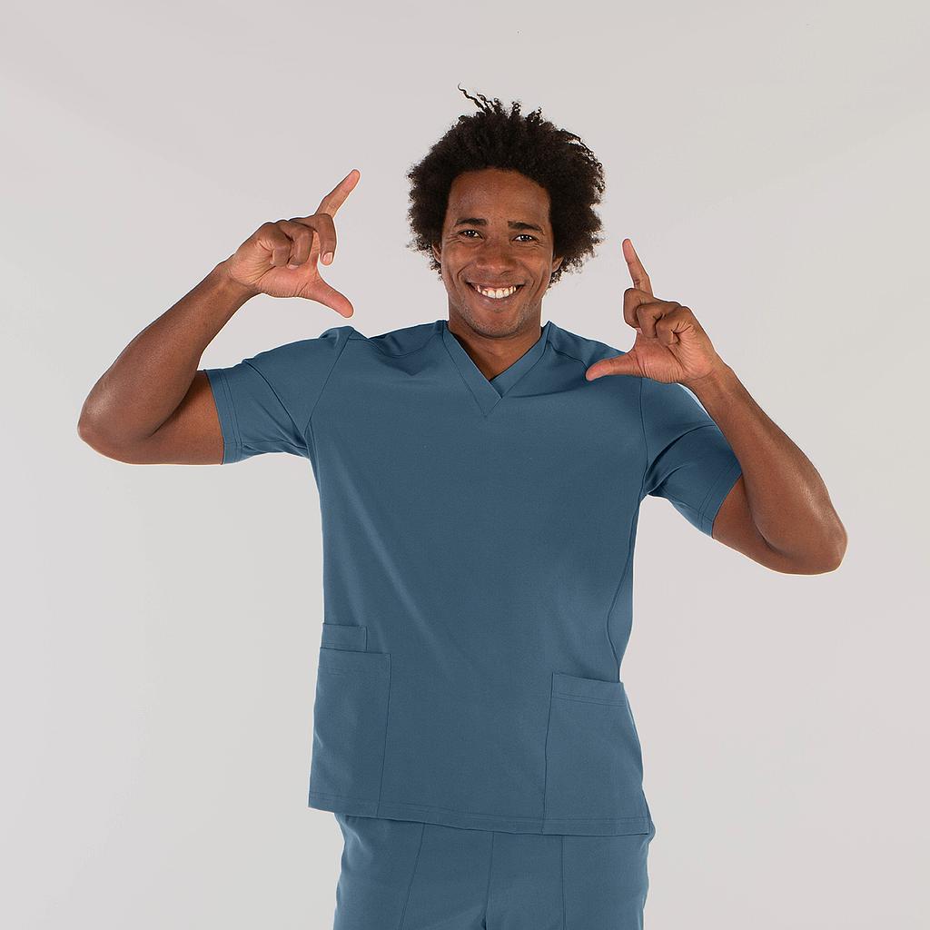 Descubra a versatilidade e o conforto da Casaca Homem Tadeo, uma peça concebida para satisfazer as exigências dos profissionais de saúde e de outros setores laborais. Esta casaca de manga curta apresenta um moderno colarinho em V e três bolsos frontais, incluindo dois no lado direito, oferecendo funcionalidade e estilo. A peça, folgada e confortável, tem costuras nas laterais da frente e de trás, bem como aberturas laterais para maior liberdade de movimentos. Confeccionada numa ampla gama de cores de MICROFIBRA 360 95% PES 5% EA - 170 gr/m², um tecido revolucionário com tratamento antibacteriano Silvadur, que incorpora iões de prata para proporcionar proteção e frescura. Este tecido absorve e mantém o suor afastado da pele, facilitando a transpiração, e a sua propriedade elástica 360 permite esticar-se em todas as direções, proporcionando maior conforto e liberdade de movimentos. Cores disponíveis: Preto (C/001) | Branco (C/101) | Azulina (C/103) | Marinho (C/104) | Rosa (C/106) | Celeste (C/107) | Verde (C/108) | Cinza pérola (C/117) | Lila (C/123) | Amarelo claro (C/128) | Coral (C/133) | Roxo (C/136) | Areia (C/142) | Verde petróleo (C/145) | Verde cáqui (C/149) | Azul acinzentado (C/152) | Verde água (C/155) | Nude (C/157) Calças a condizer: 700083. Versão feminina: 659600.