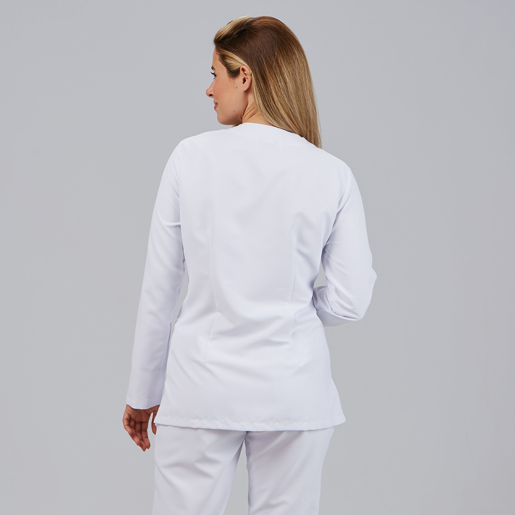 Descubra a BLUSA MUJER AITANA, uma peça essencial no âmbito do vestuário sanitário e de trabalho, concebida para profissionais da saúde e da indústria alimentar. Com mangas compridas e gola em V, esta blusa combina funcionalidade e estilo com um fecho de botões de pressão ocultos e dois bolsos de remendo à frente. O seu design semi-ajustado, com pinças na frente, peito e costas, oferece uma silhueta favorecedora. Confeccionada em MICROFIBRA 100% PES - 148 gr/m², garante resistência antibacteriana, alta transpirabilidade e tolerância a salpicos de lixívia diluída em água. Lavável a 90º, de secagem rápida e repelente ao cabelo, é a escolha perfeita para uniformes em ambientes sanitários, desde hospitais e clínicas a spas e lojas. Cores disponíveis: Preto (C/001) | Branco (C/101) | Azul marinho (C/104) | Cinza pérola (C/117) | Framboesa (C/138) | Cinza marengo (C/139) | Areia (C/142) Calças a condizer: 700600. Versão masculina: 615500. Descubra a excelência em vestuário de trabalho para o setor da saúde!